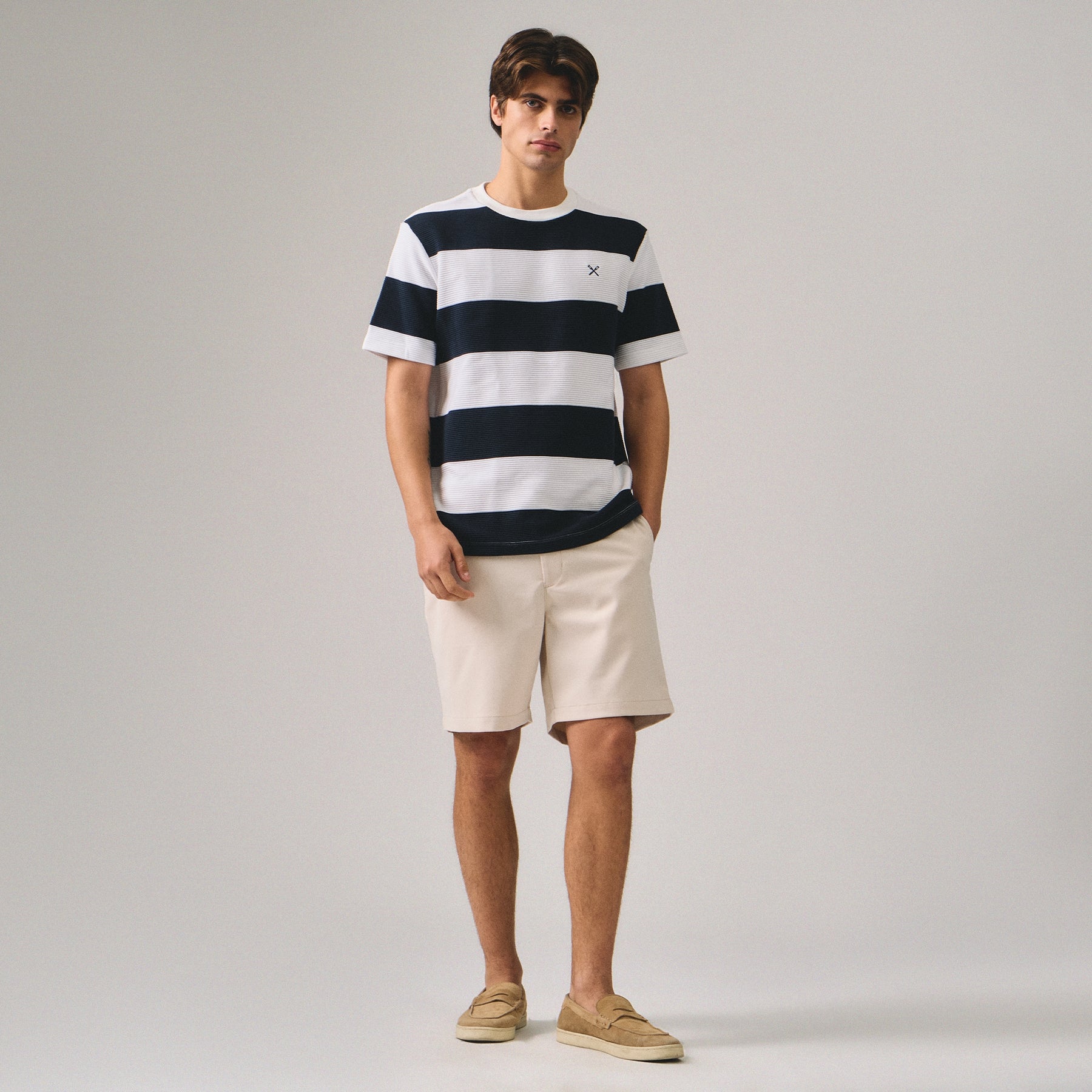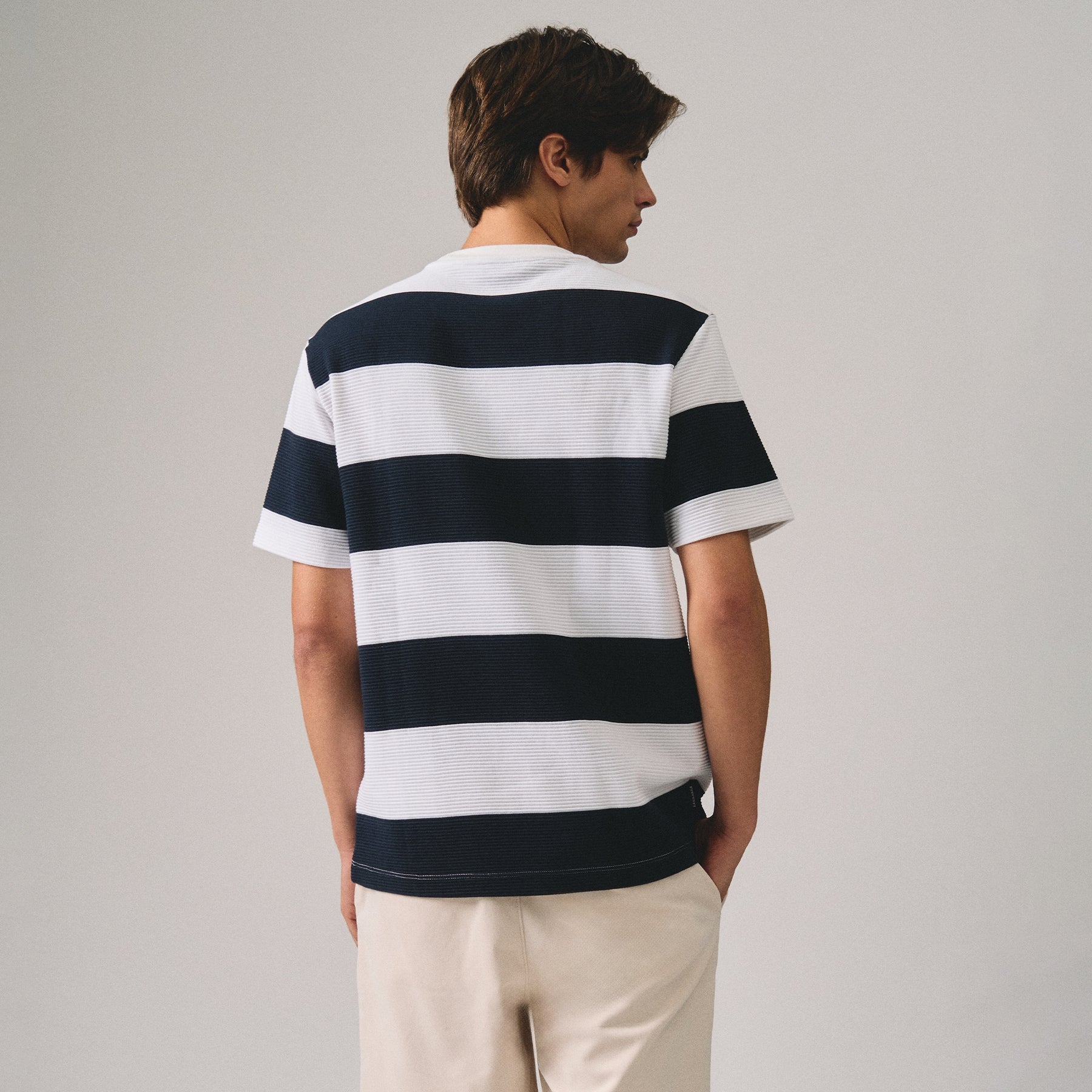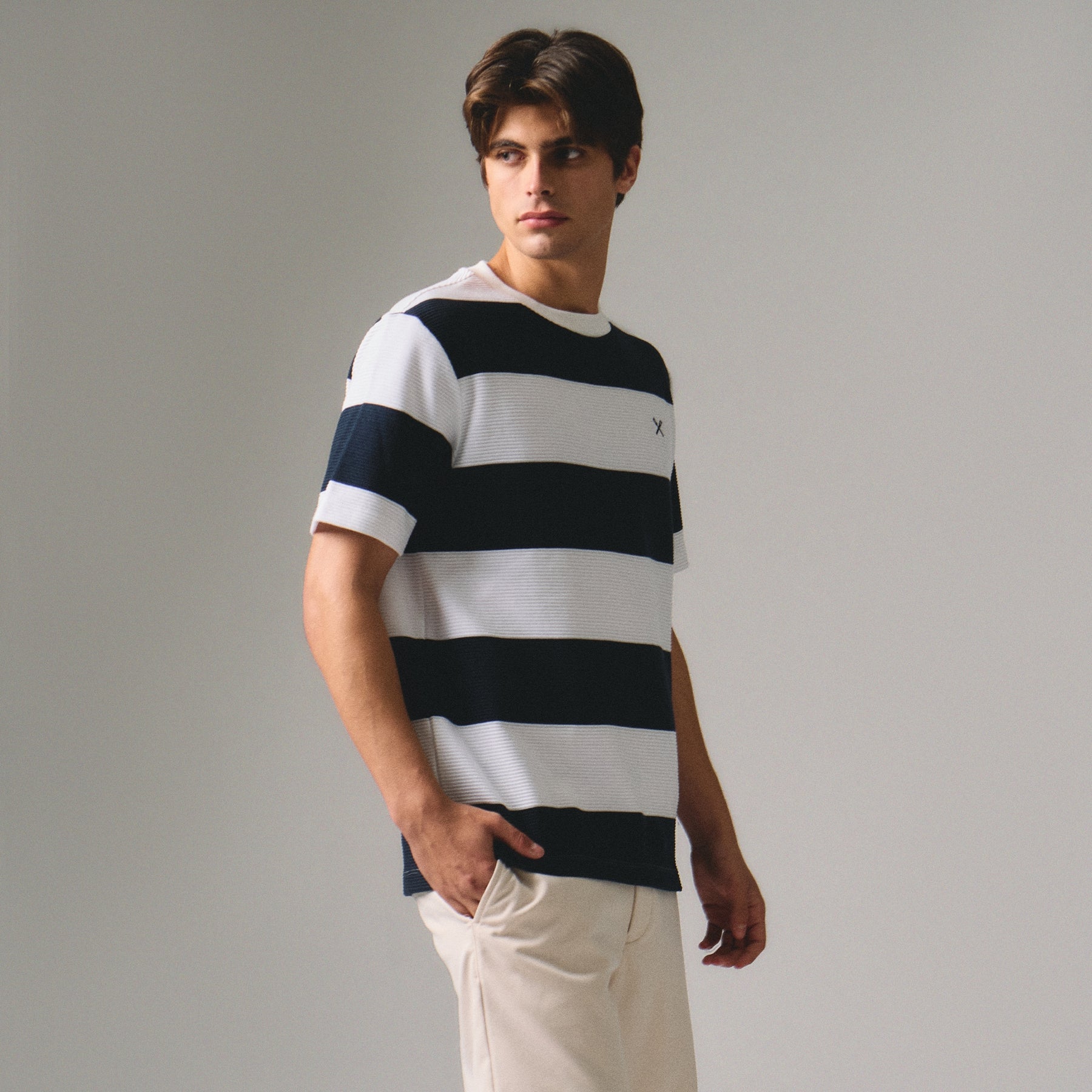 This Regular Fit Striped T-Shirt in Ottoman features a classic striped design crafted with a textured Ottoman fabric, providing subtle depth and durability. Its regular fit ensures comfortable wear, making it a versatile addition to your casual wardrobe. Ideal for layering or standalone wear, this t-shirt combines style and practicality for everyday use.