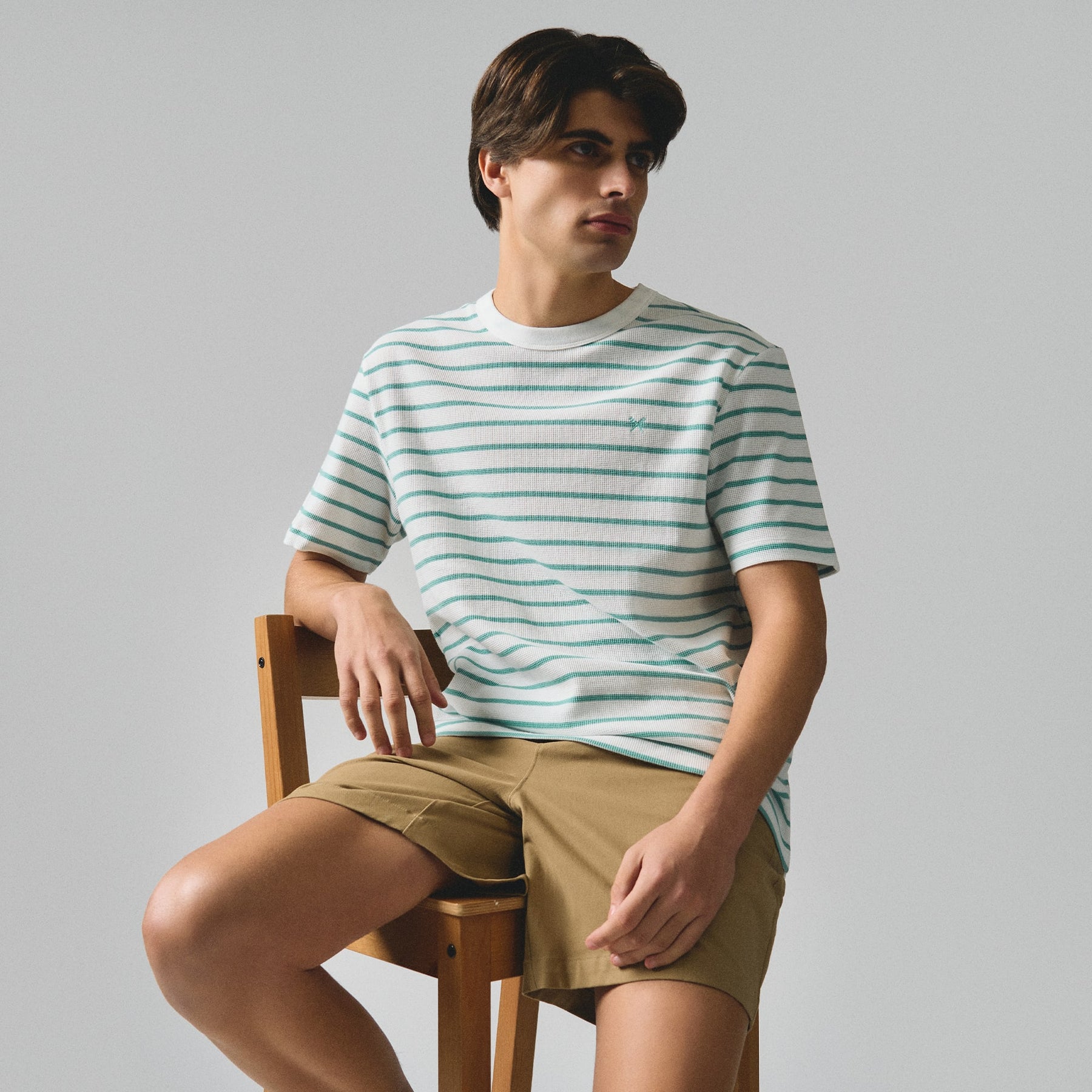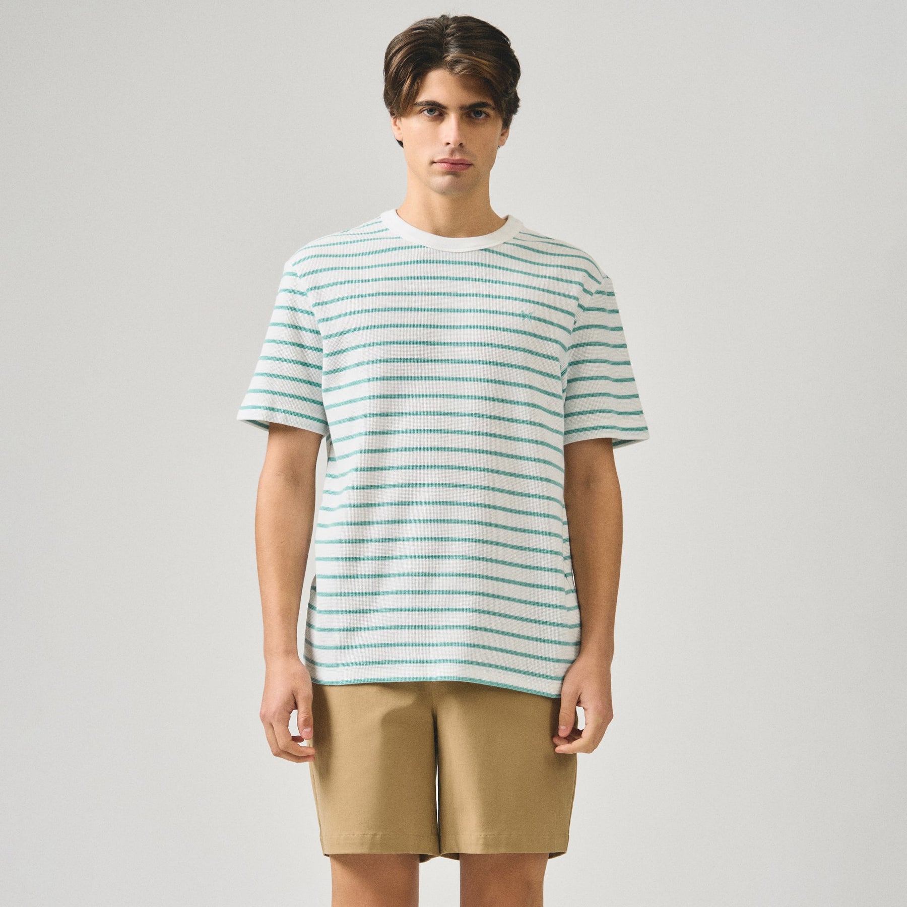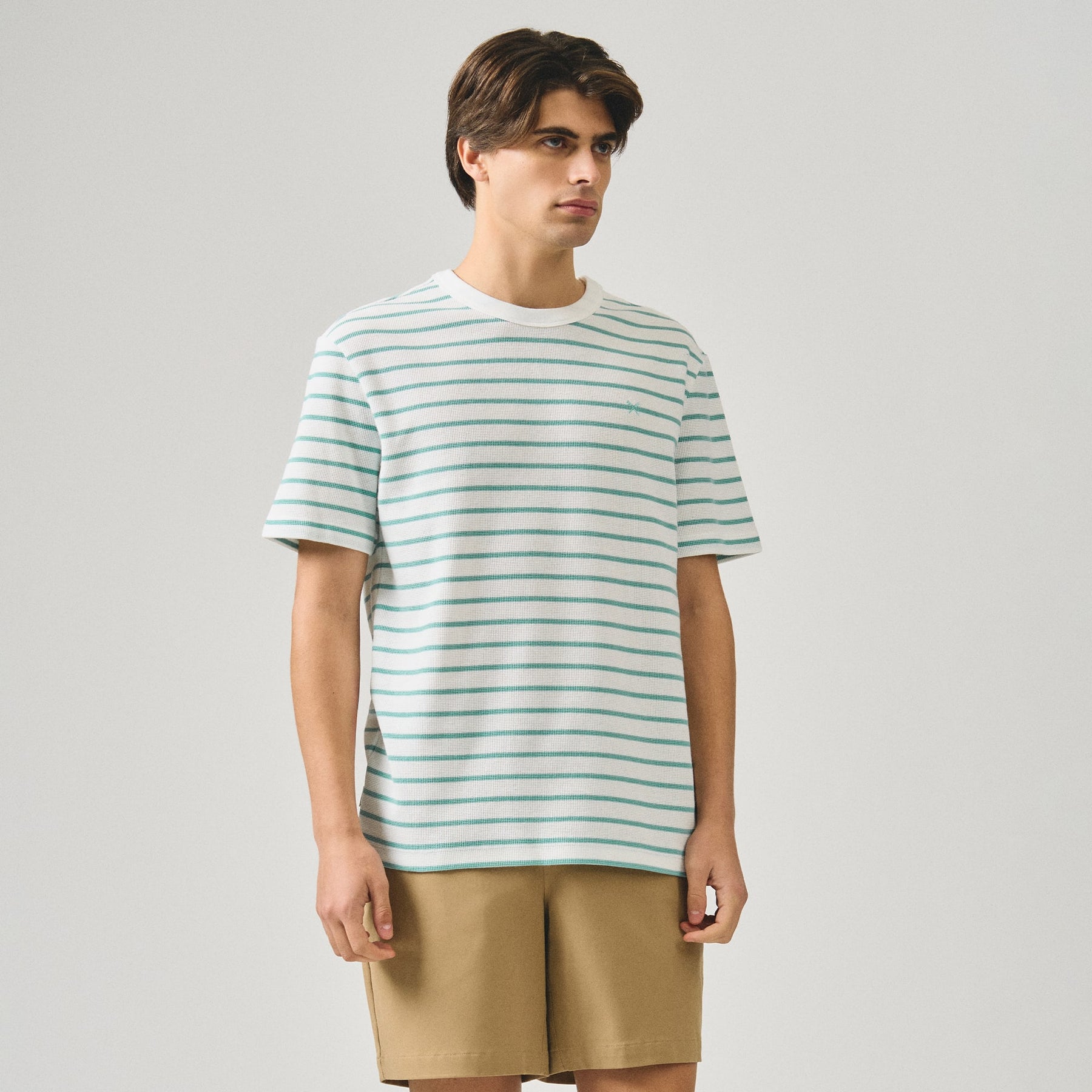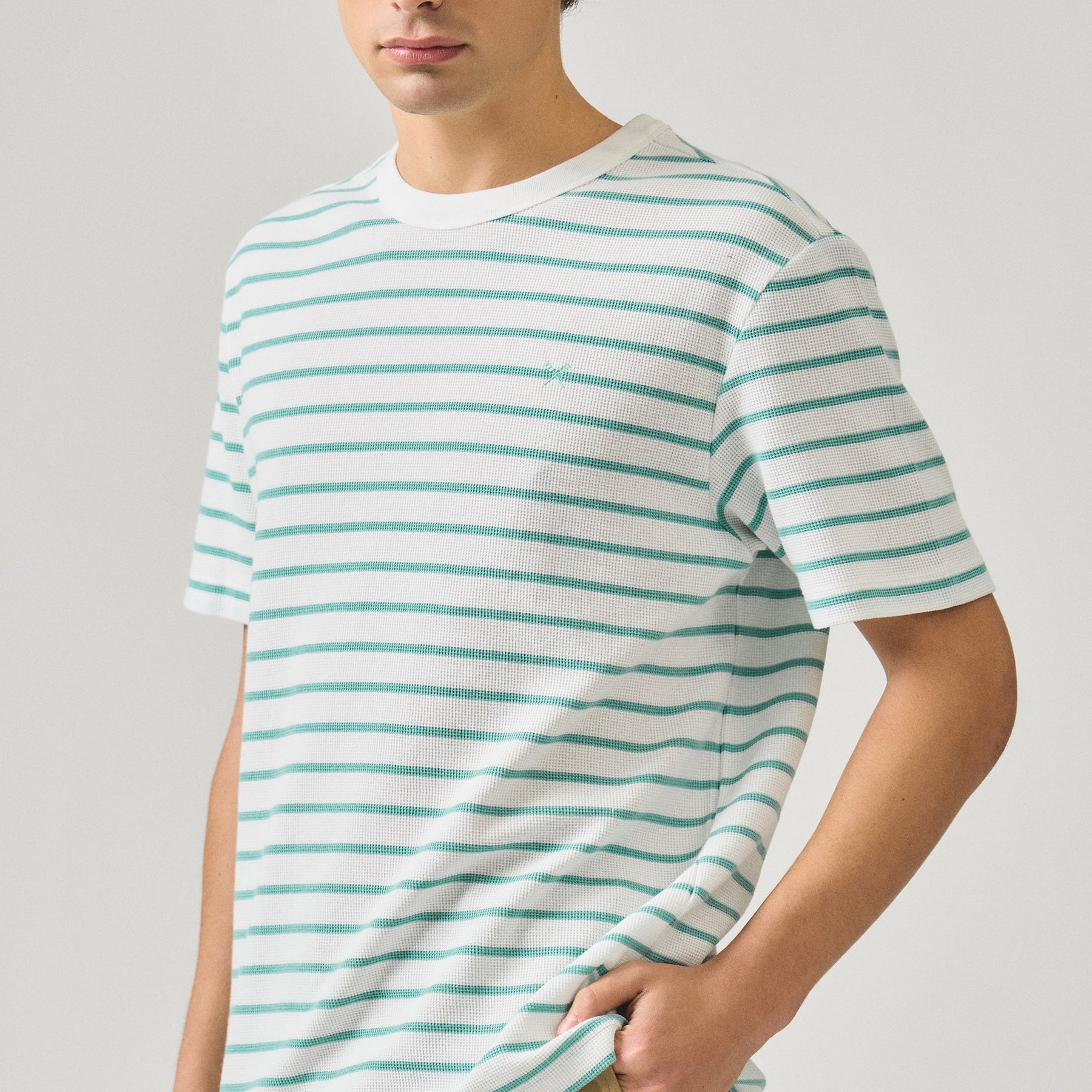Crafted from premium thermal knit fabric, this regular fit striped t-shirt delivers exceptional warmth without bulk. The classic stripe pattern adds versatile styling appeal, while the thermal construction provides superior insulation for cooler seasons. The relaxed regular fit ensures comfortable everyday wear, making it an essential layering piece or standalone option. Durable and easy to care for, this tee transitions seamlessly from casual outings to relaxed indoor settings.