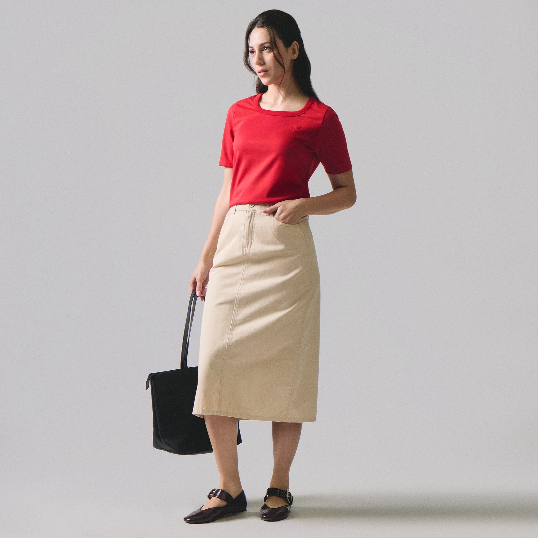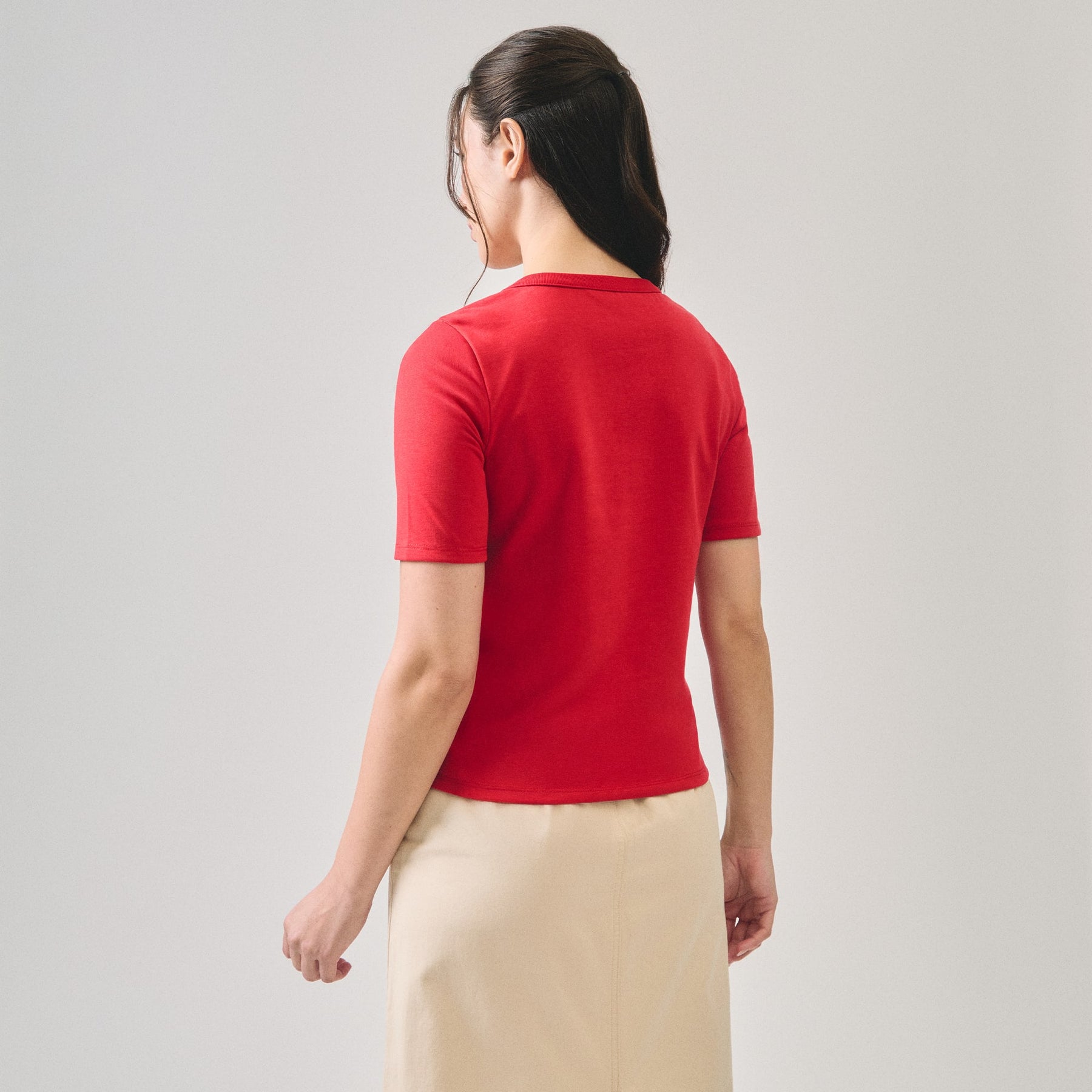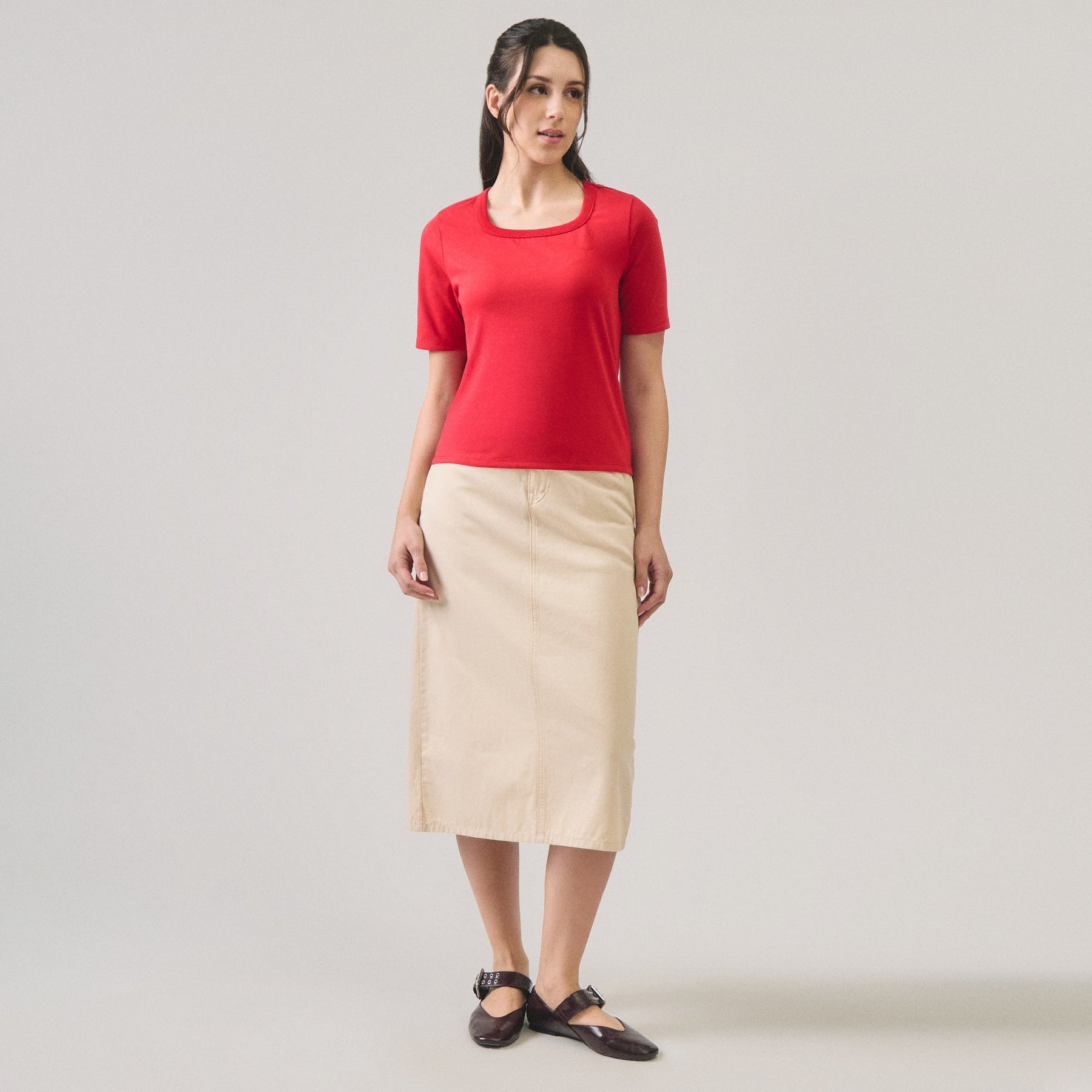 The Square Neck Basic T-Shirt delivers timeless versatility with a contemporary silhouette. Featuring a distinctive square neckline that flatters various body types, this essential piece transitions seamlessly from casual weekends to layered styling. Crafted from quality fabric, it offers comfortable wear throughout the day while maintaining its shape and color. Perfect as a standalone statement or as a foundational layer in any wardrobe, this tee combines understated elegance with practical everyday functionality.
