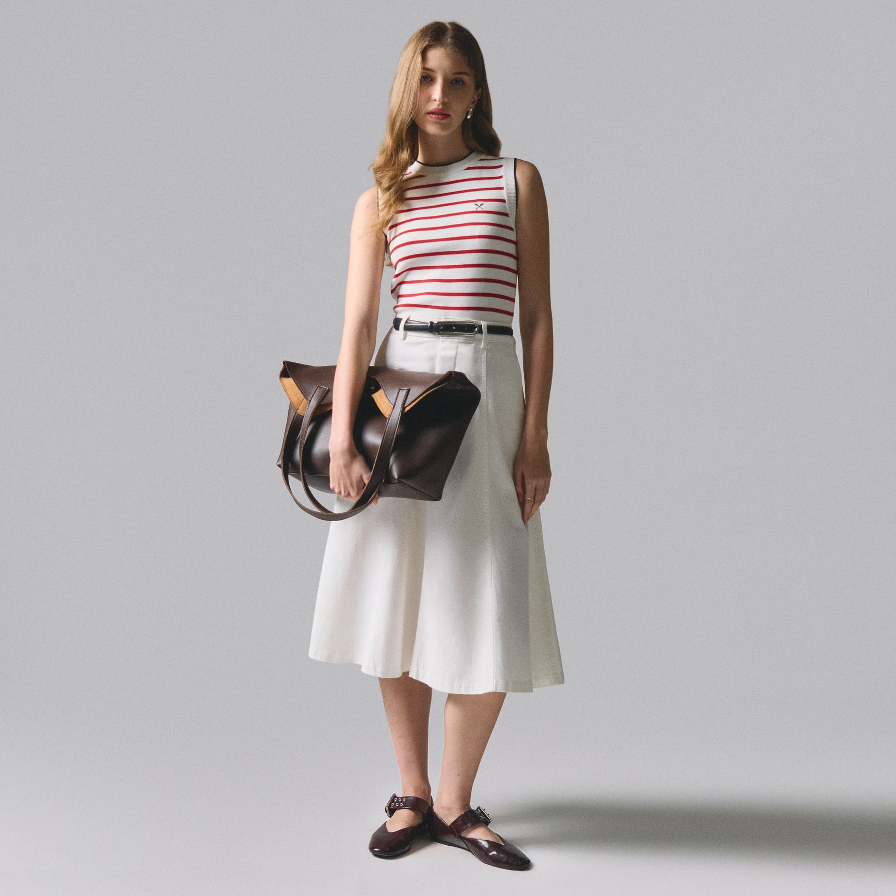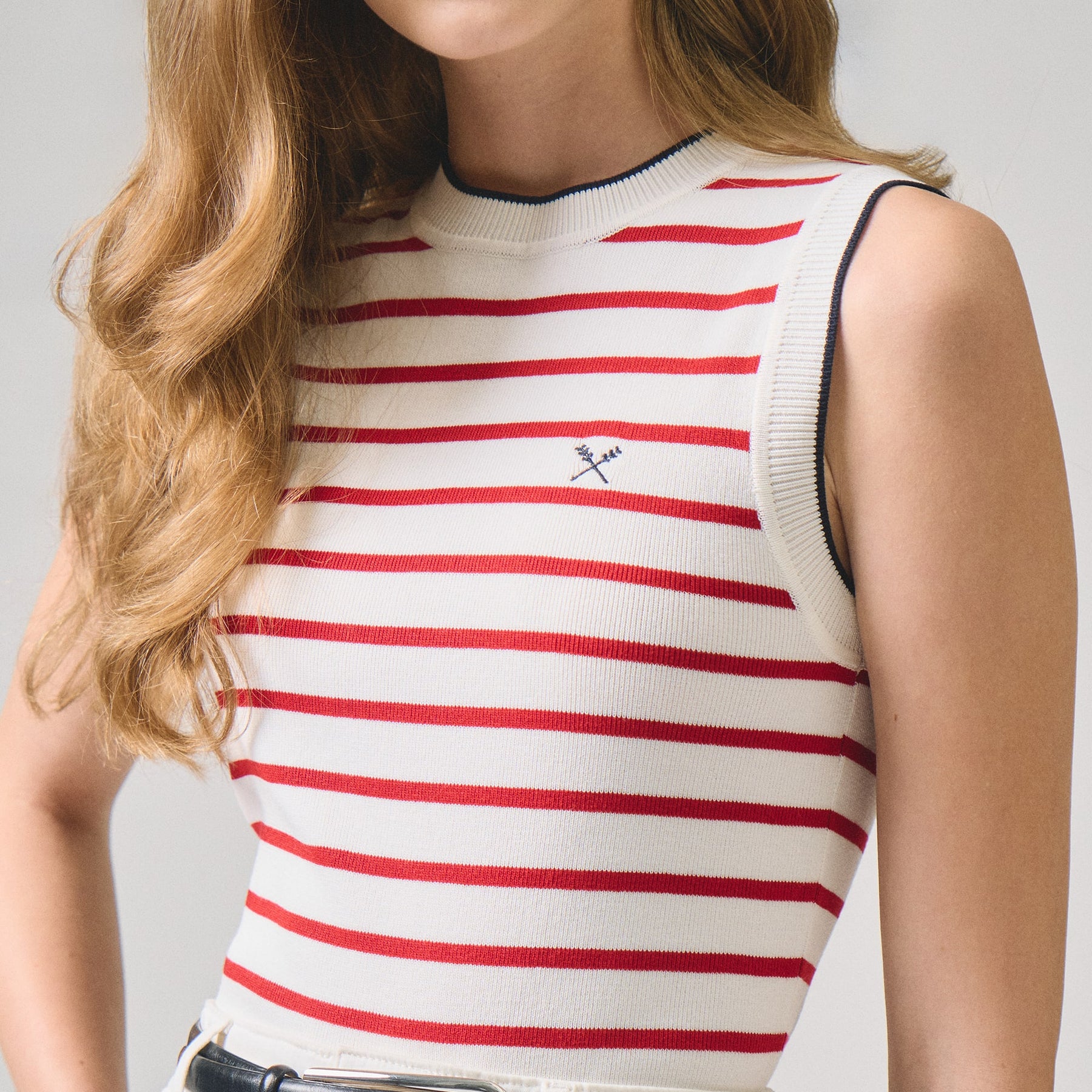 Crafted from premium flat knit fabric, this striped top delivers refined simplicity with understated elegance. The structured construction maintains its shape through repeated wear and washing, while the classic stripe pattern offers versatile styling options for both casual and polished occasions. The flat knit technique ensures a smooth, refined finish that resists pilling and provides superior durability. Perfect for layering or wearing solo, this essential piece transitions seamlessly across seasons and complements any wardrobe foundation.