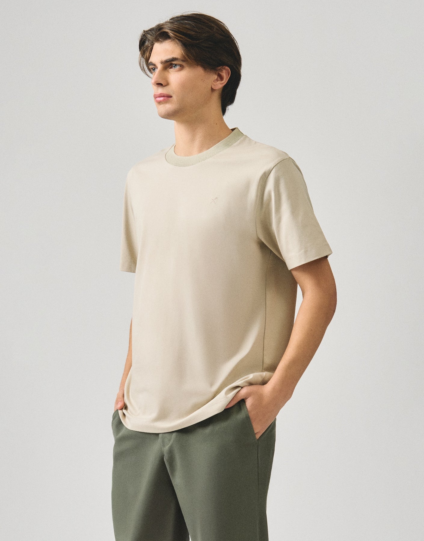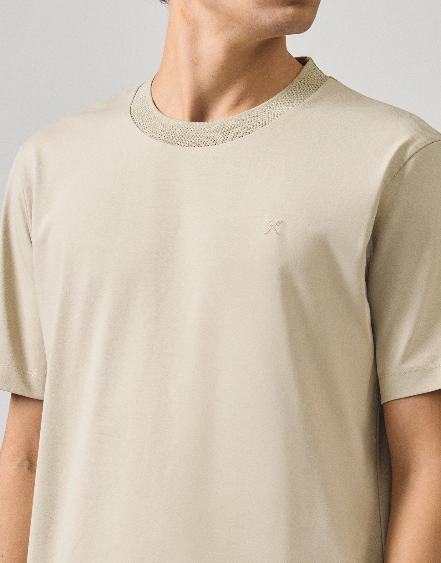 Regular Fit T-Shirt With Jacquard Neck Band In Sorona
