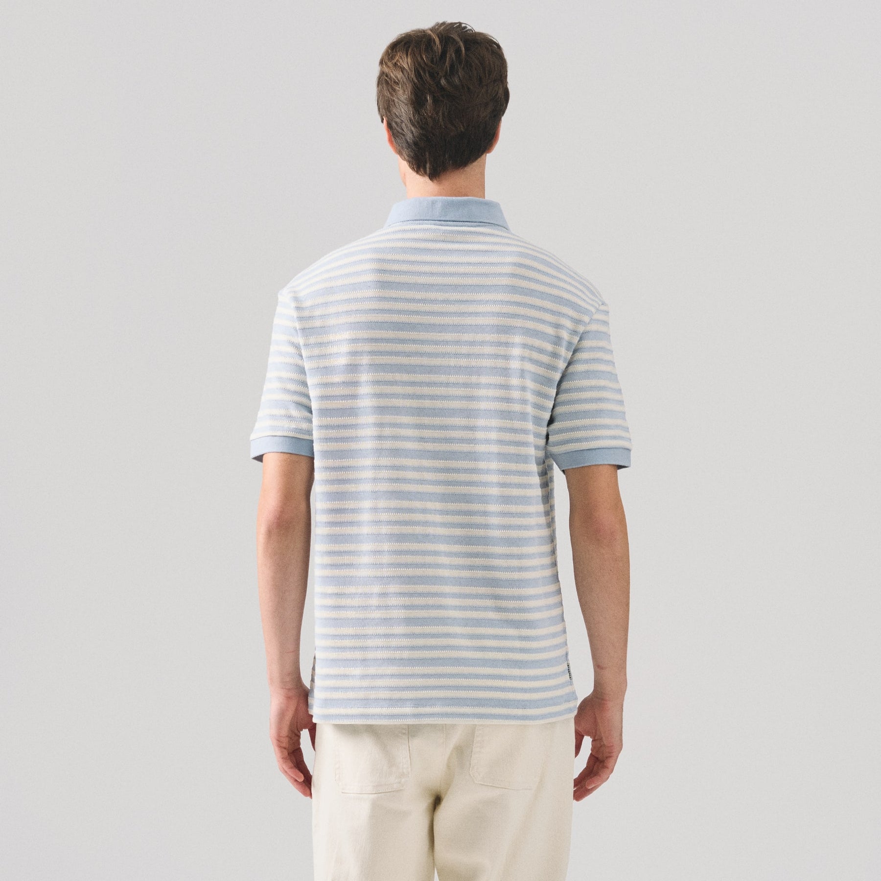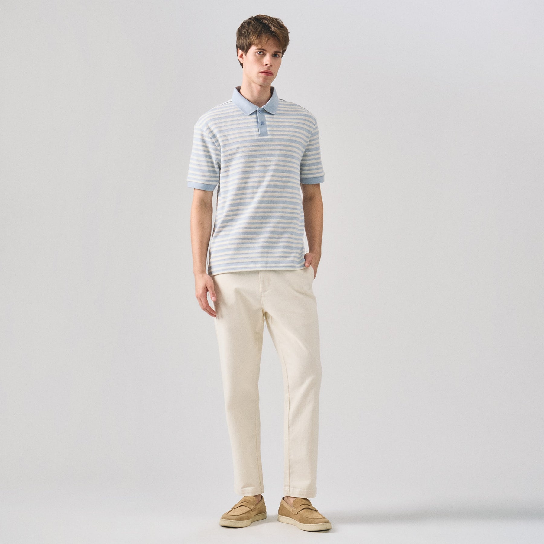 Regular Fit Polo Shirt In Jacquard Striped Elevate your casual wardrobe with this sophisticated polo shirt, crafted from premium jacquard-striped fabric that delivers both visual interest and refined texture. The regular fit provides comfortable movement without excess bulk, making it ideal for weekend outings or smart-casual occasions. The classic polo silhouette pairs effortlessly with chinos or jeans, while the intricate striped pattern adds dimension to your everyday styling. Durable construction ensures this piece remains a reliable staple season after season.