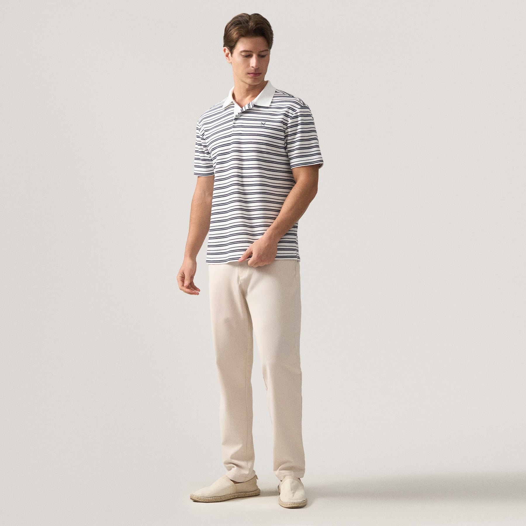 Elevate your casual wardrobe with this versatile regular fit polo shirt, crafted from premium honeycomb pique fabric that delivers exceptional breathability and durability. The classic striped pattern adds visual interest while maintaining a polished, timeless aesthetic suitable for both weekend outings and smart-casual occasions. The honeycomb weave construction provides superior moisture-wicking properties, keeping you comfortable throughout the day. Perfect for layering or wearing solo, this polo combines refined tailoring with practical performance, making it an essential staple for the discerning gentleman seeking quality and style.