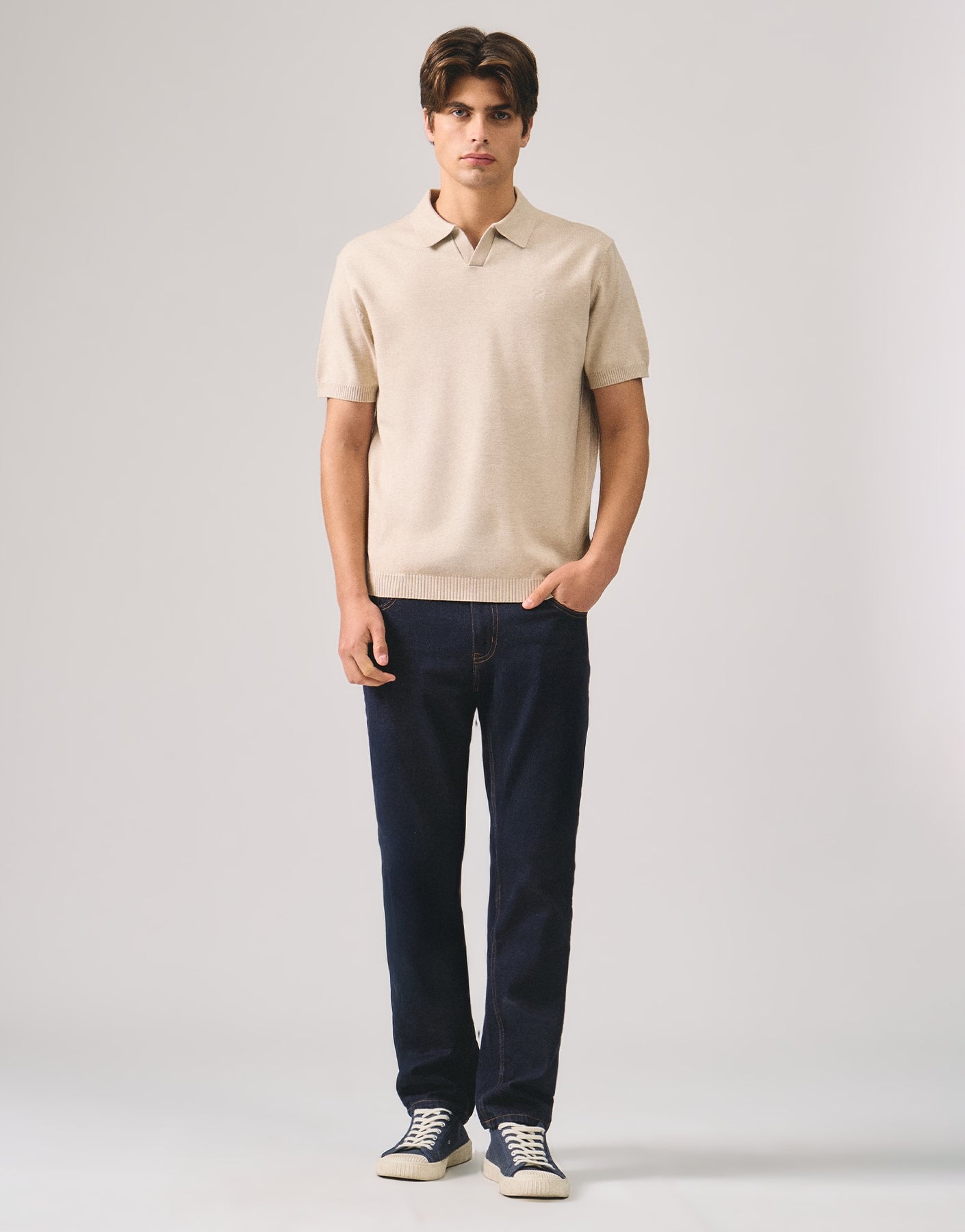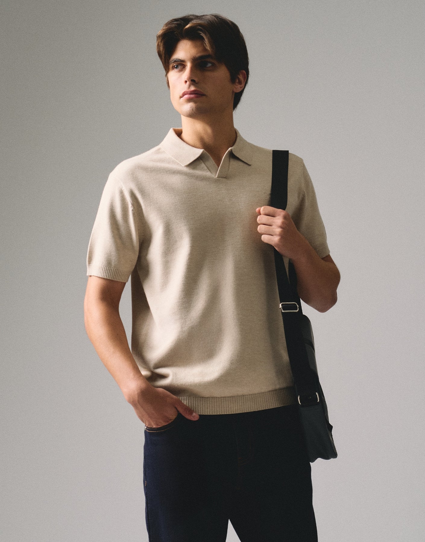 Regular Fit V-Placket Polo Shirt In Flat Knit Elevate your casual wardrobe with this versatile polo shirt, engineered with a refined flat knit construction that delivers superior durability and a polished appearance. The classic V-placket design offers a sophisticated neckline detail, while the regular fit provides comfortable movement without excess fabric. Crafted for everyday wear, this piece transitions seamlessly from weekend outings to smart-casual settings, making it an essential addition to any modern gentleman's collection.