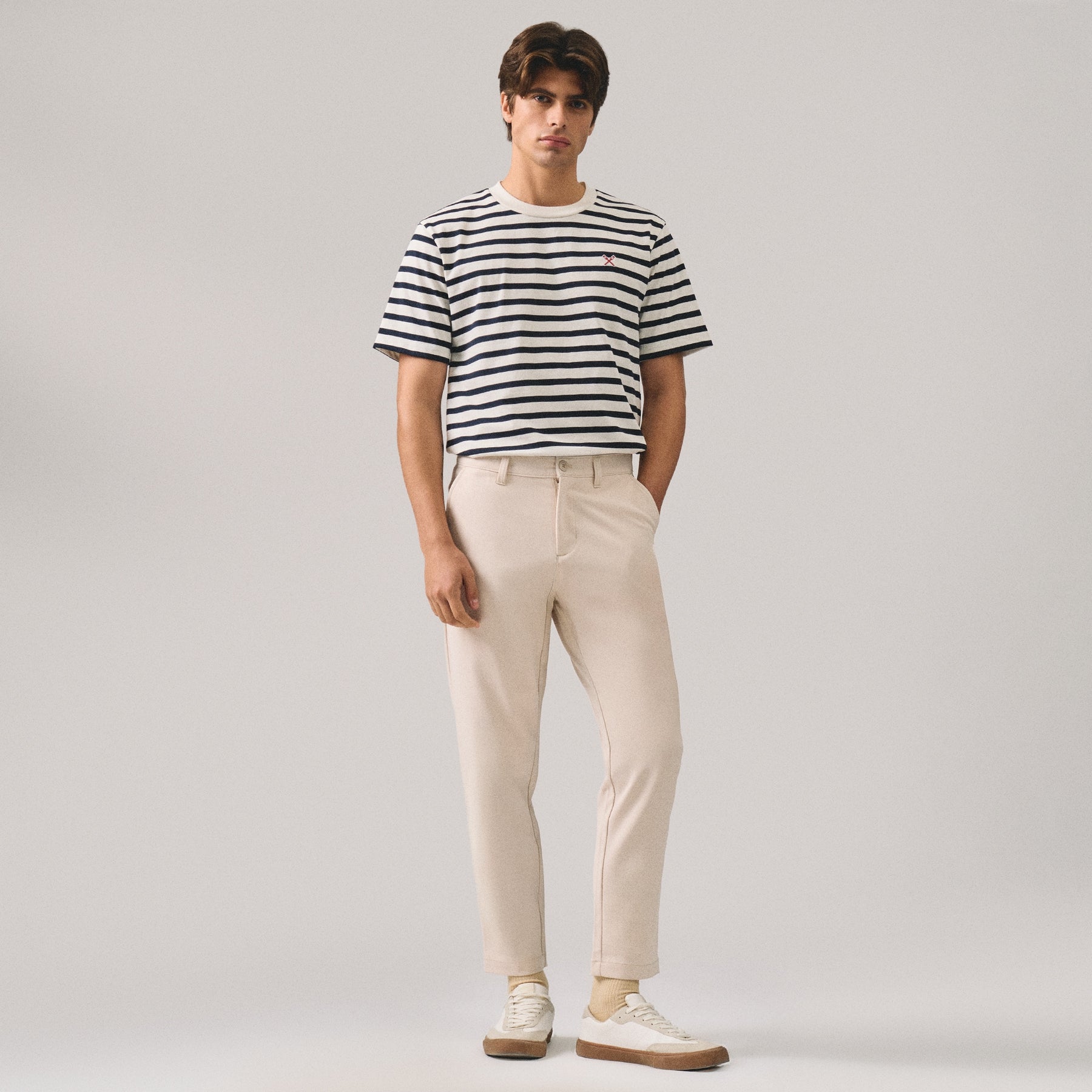 These slim fit canvas trousers represent a sophisticated choice for those prioritizing both aesthetics and performance. The heavyweight canvas construction delivers exceptional durability while developing a distinctive patina over time, enhancing character with wear. The streamlined fit provides a contemporary silhouette that works across diverse occasions, from boardroom meetings to weekend gatherings. Thoughtfully designed with reinforced stress points and quality hardware, these trousers withstand regular use while maintaining their structured appearance. An understated yet versatile piece that rewards investment through years of reliable service.