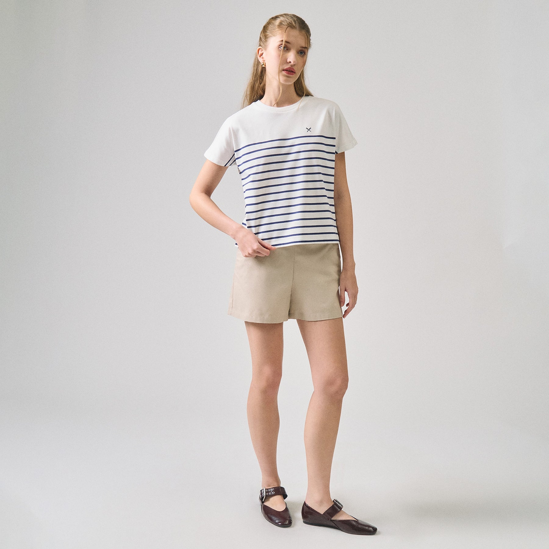 A timeless wardrobe essential, the Breton striped t-shirt combines classic French nautical heritage with everyday versatility. Featuring the iconic horizontal stripes in contrasting colors, this piece transitions seamlessly from casual weekends to layered styling. Crafted for comfort and durability, it pairs effortlessly with denim, tailored trousers, or skirts. The structured fit and quality construction ensure this iconic design remains a reliable choice season after season, embodying understated elegance that never goes out of style.