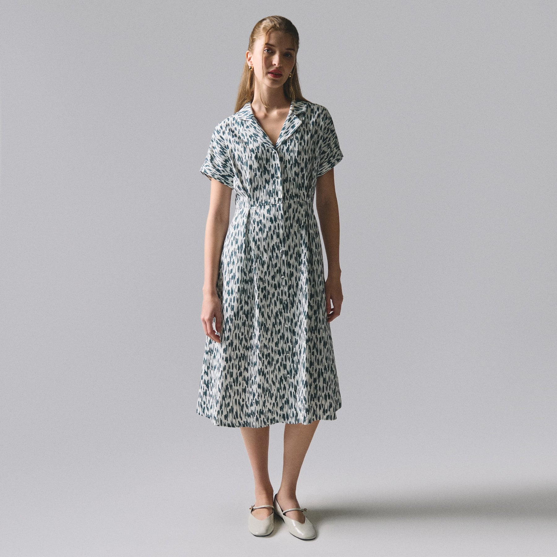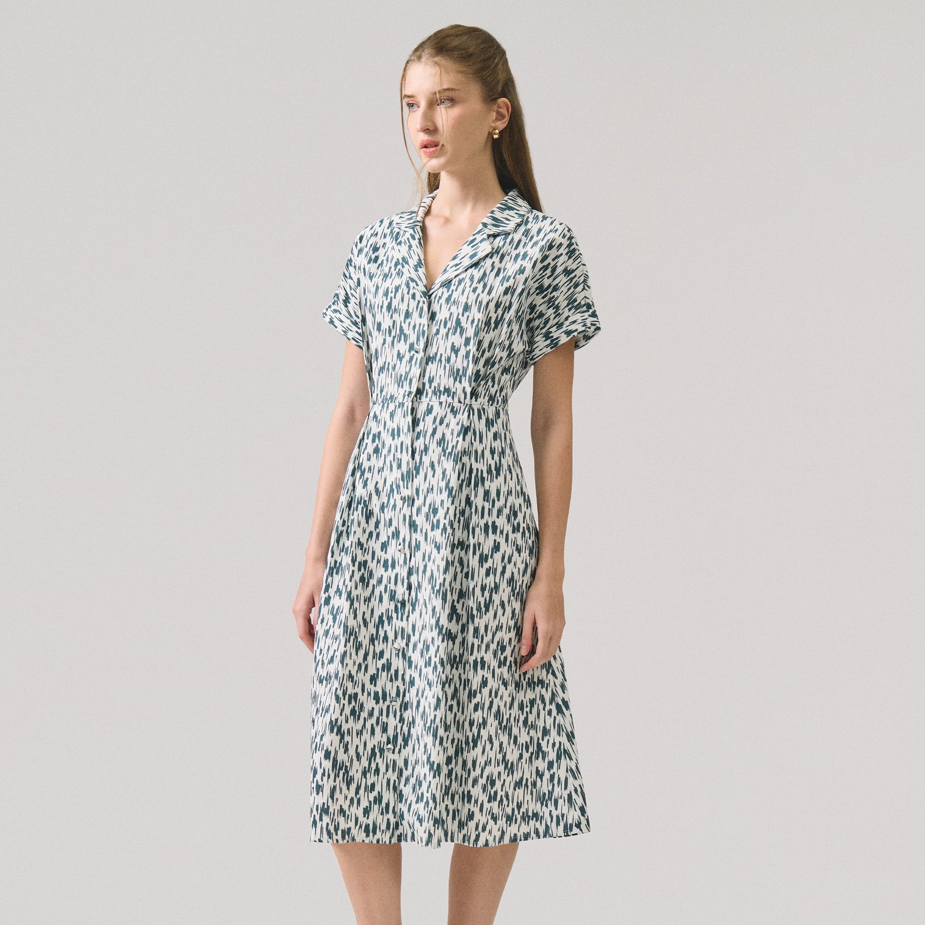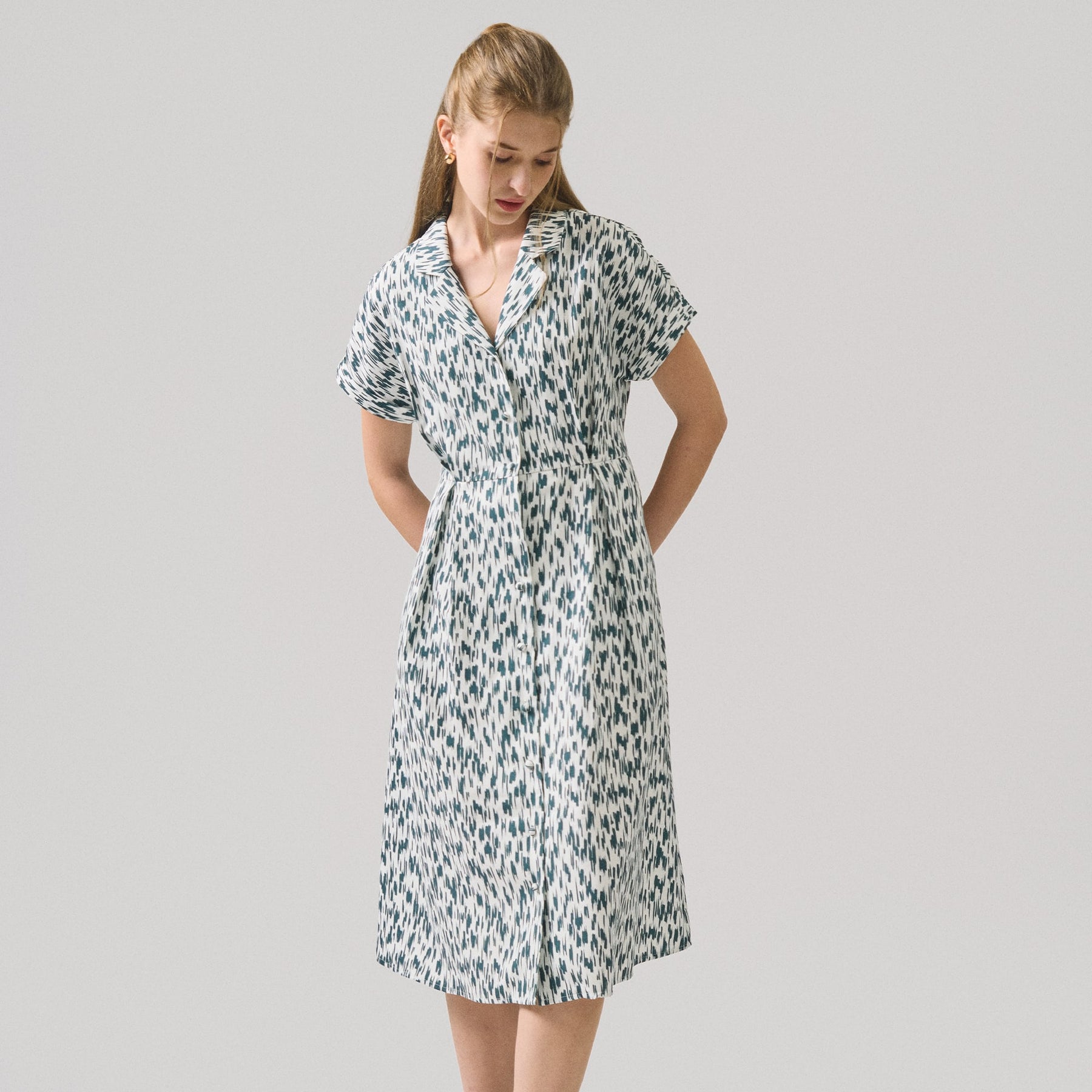 Elevate your everyday wardrobe with this versatile printed button-down dress. Crafted for effortless sophistication, the classic button-front silhouette offers timeless appeal while the eye-catching print adds personality to any occasion. The structured fit flatters various body types, making it an ideal choice for work, casual outings, or weekend gatherings. Pair it with sneakers for relaxed elegance or dress it up with heels for a polished look. A wardrobe essential that transitions seamlessly from season to season.