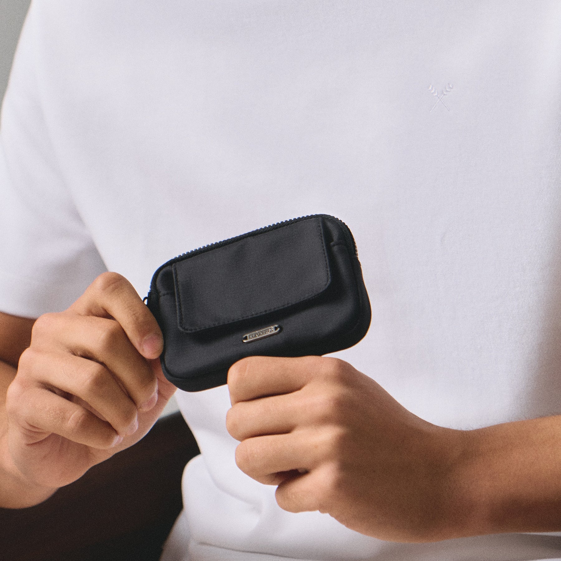 Compact and practical, this coin purse with flap offers secure storage for loose change and small essentials. The protective flap closure keeps contents safely contained, while the streamlined design fits effortlessly into pockets, bags, or wallets. Ideal for everyday carry, travel, or organizing spare coins. A functional accessory that combines durability with understated style for those who value organization and convenience.
