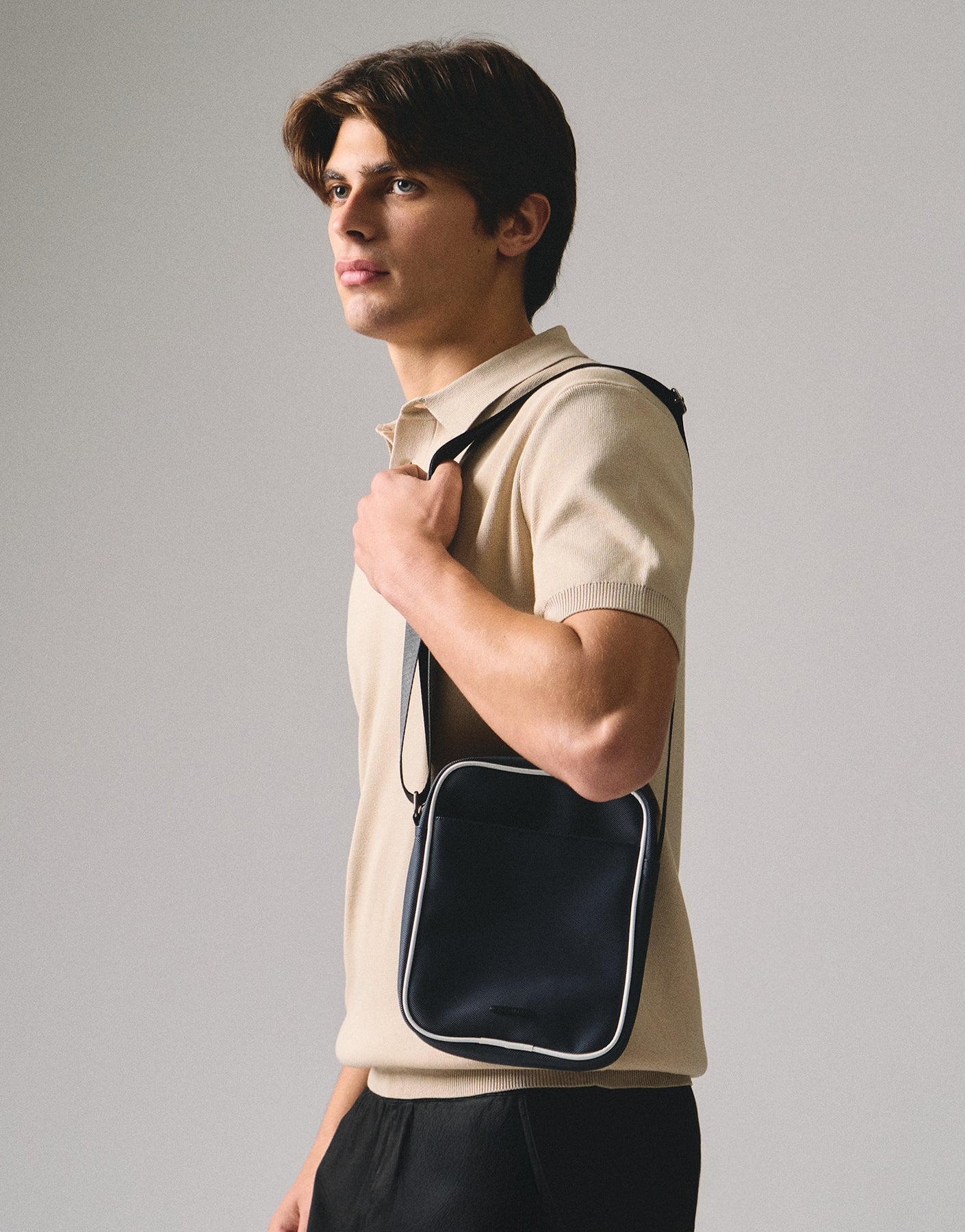 Elevate your everyday carry with this sophisticated crossbody bag, designed for the discerning traveler. The refined piping detail adds a polished edge to its clean silhouette, while the adjustable strap ensures comfortable, hands-free wear. Crafted with attention to detail, this versatile piece transitions seamlessly from day to evening, making it an essential addition to any wardrobe. Perfect for those who value both style and practicality.
