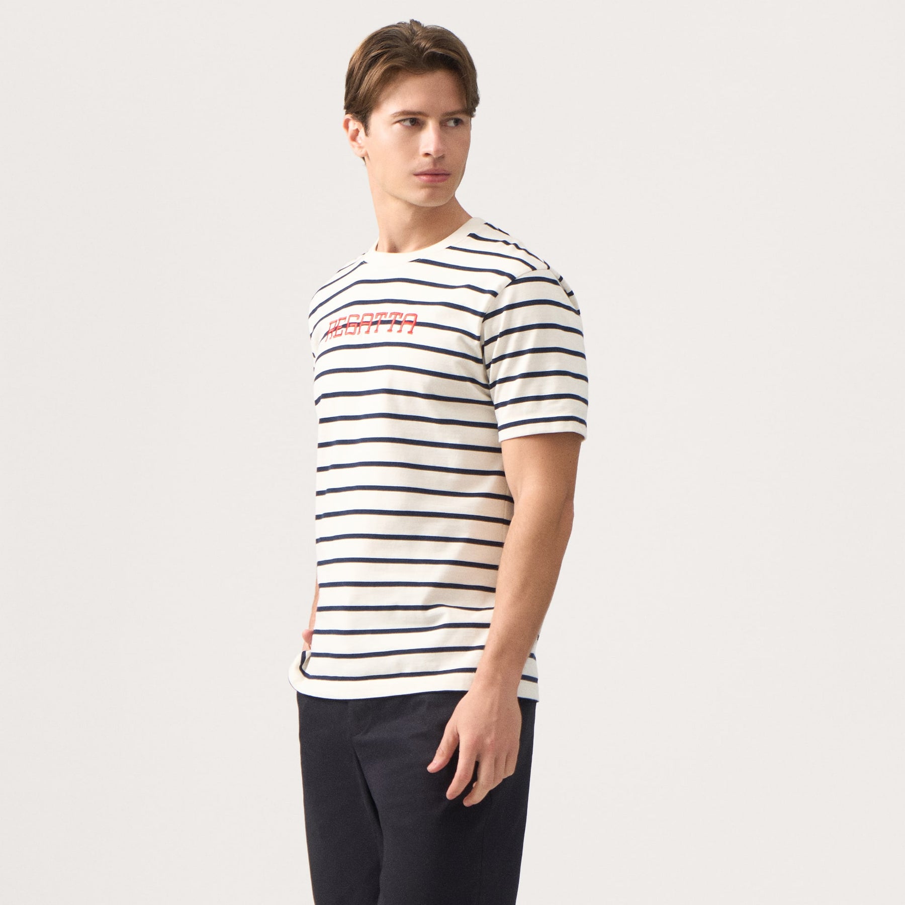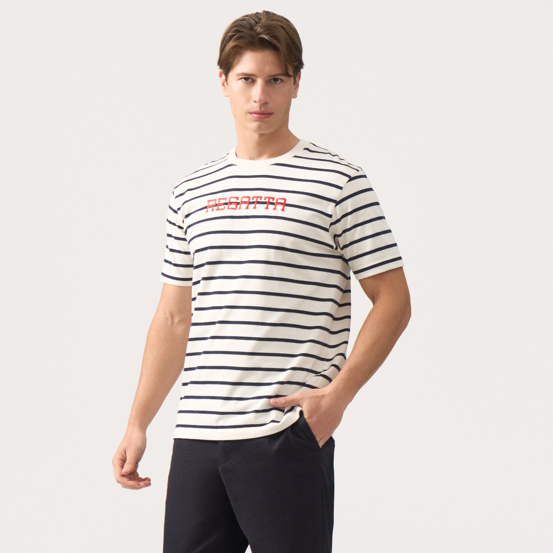 Regular Fit Striped T-Shirt Crafted for versatile everyday wear, this striped t-shirt delivers timeless style with practical comfort. The regular fit provides an approachable silhouette that works across various body types and layering preferences. Classic horizontal stripes create visual interest while maintaining a refined aesthetic suitable for casual outings, weekend gatherings, or relaxed office environments. Quality construction ensures durability through repeated wear and washing, making it a reliable staple for any wardrobe. Pair it effortlessly with jeans, chinos, or shorts for an instantly polished look.