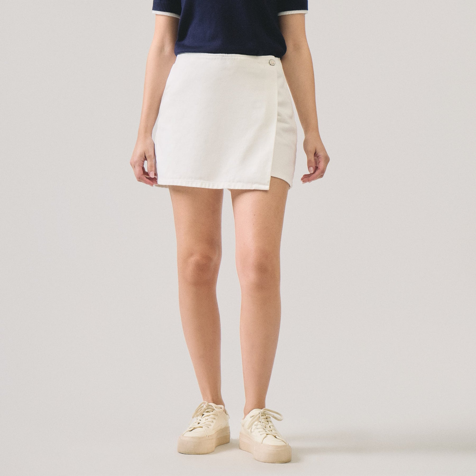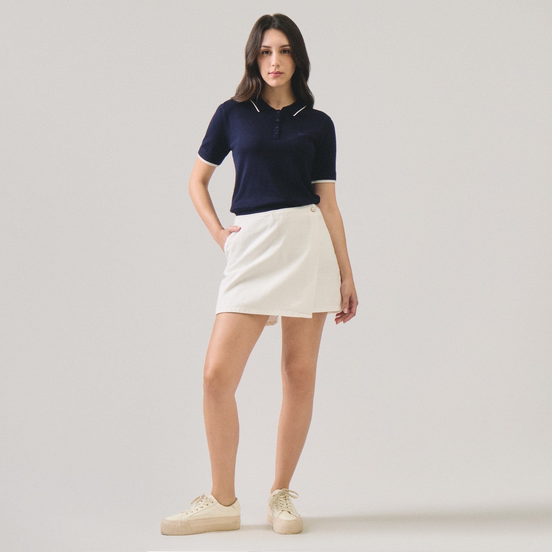 Crafted from premium white twill fabric, this skort seamlessly blends athletic functionality with polished style. The structured weave provides durability and maintains its crisp appearance through repeated wear and washing. Designed with a flattering silhouette, it features an integrated shorts lining for unrestricted movement and confidence. Perfect for golf, tennis, or casual weekend outings, this versatile piece transitions effortlessly from court to street. The neutral white tone pairs with virtually any top, making it an essential addition to any active wardrobe.