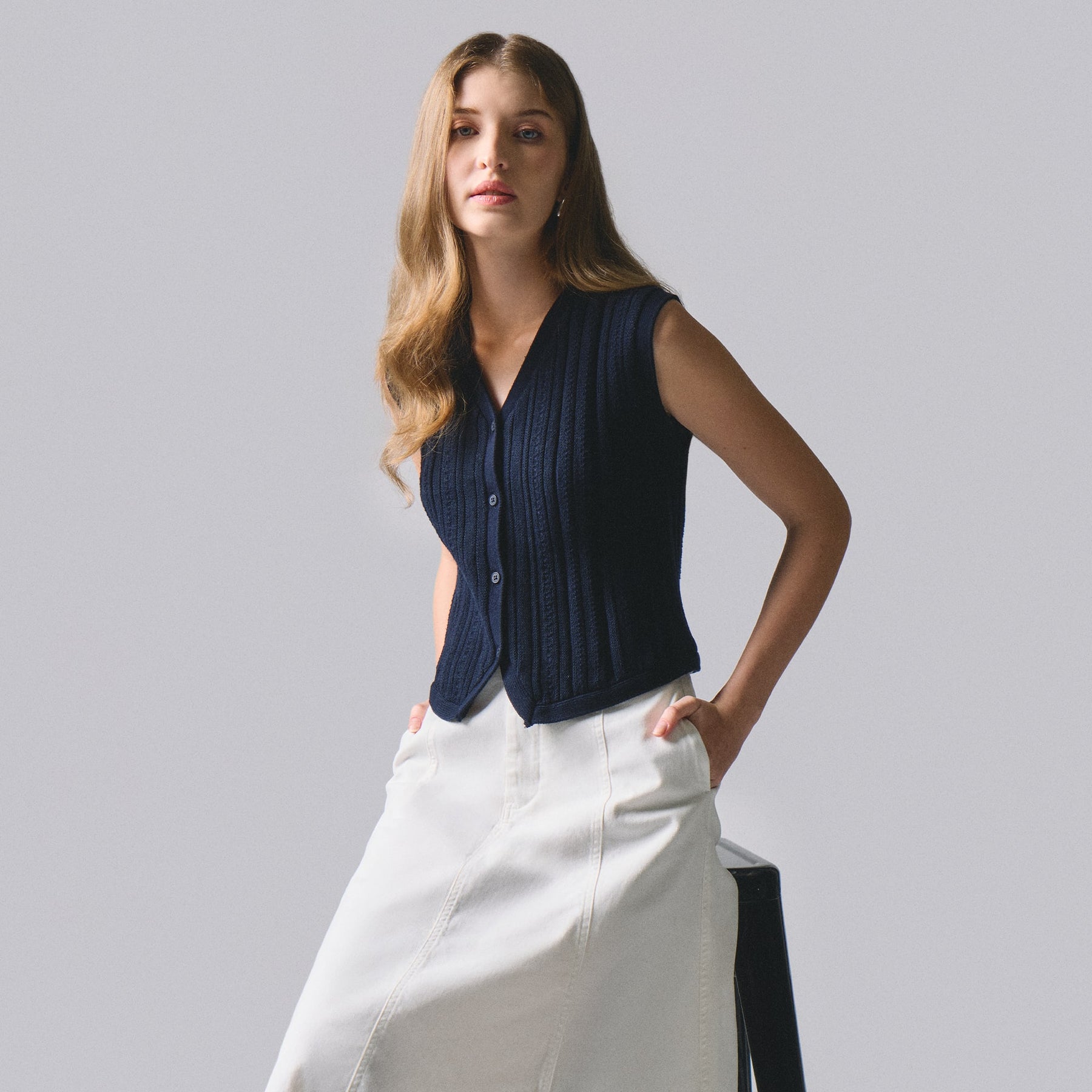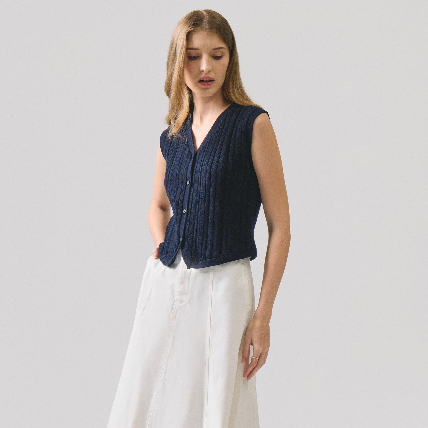 Elevate your layering game with this sophisticated textured knit vest. Crafted from premium knit fabric, it features a refined construction that adds visual interest and dimension to any outfit. The versatile design transitions seamlessly from casual weekends to polished professional settings, making it an essential piece for the modern wardrobe. Layer it over shirts, sweaters, or wear it standalone for effortless style. Perfect for building a cohesive, intentional collection of timeless basics.