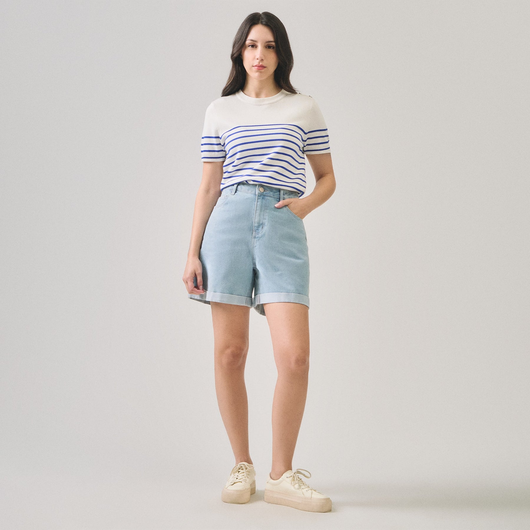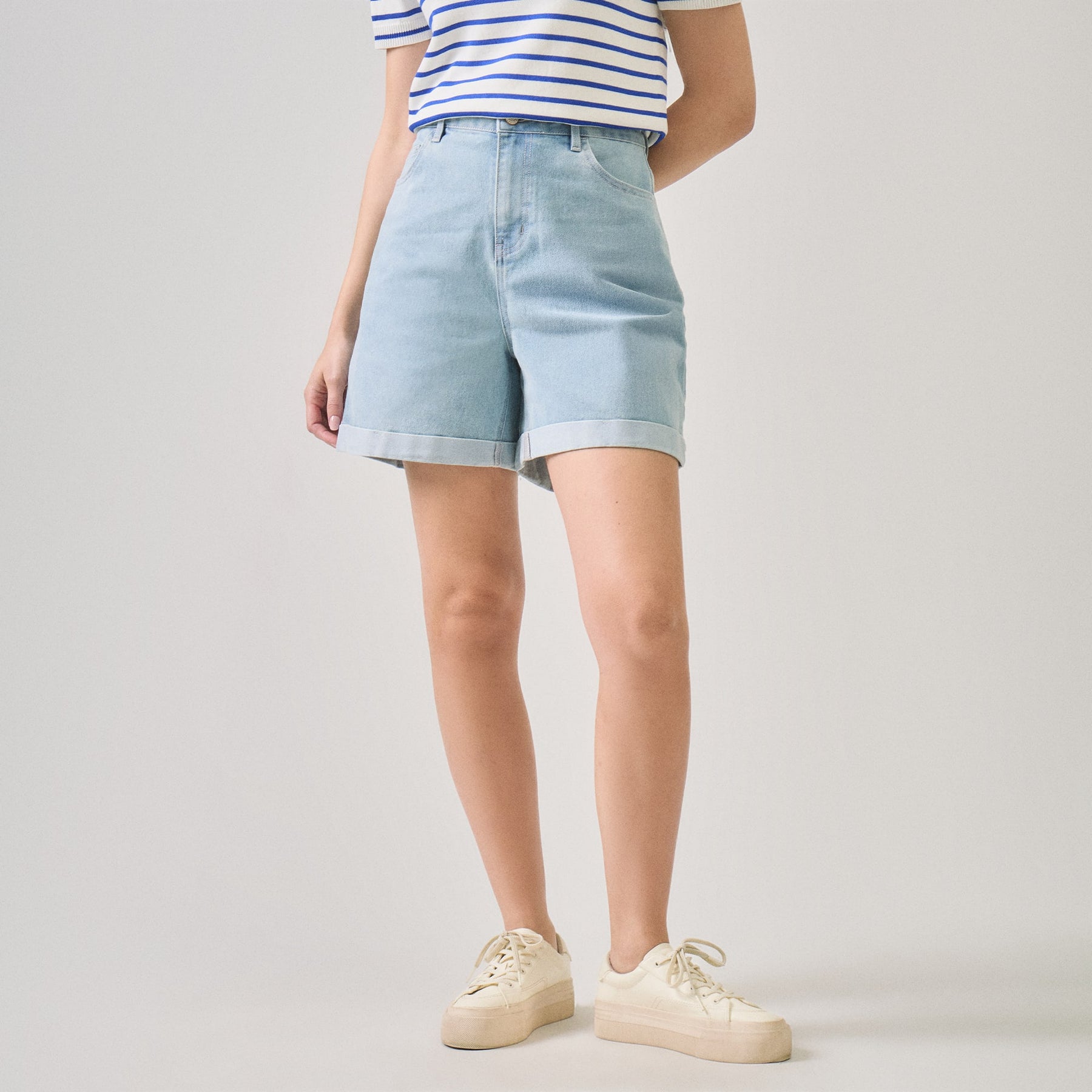 Light Wash Denim Shorts Crafted from premium denim, these shorts deliver timeless versatility with a contemporary edge. The light wash finish creates an effortlessly casual aesthetic that pairs seamlessly with everything from basic tees to layered tops. Designed with a comfortable fit and classic five-pocket construction, they're an essential wardrobe staple for warm-weather dressing. Whether you're heading to the beach, running errands, or enjoying weekend gatherings, these shorts offer the perfect balance of style and practicality. Durable denim construction ensures lasting wear through multiple seasons.