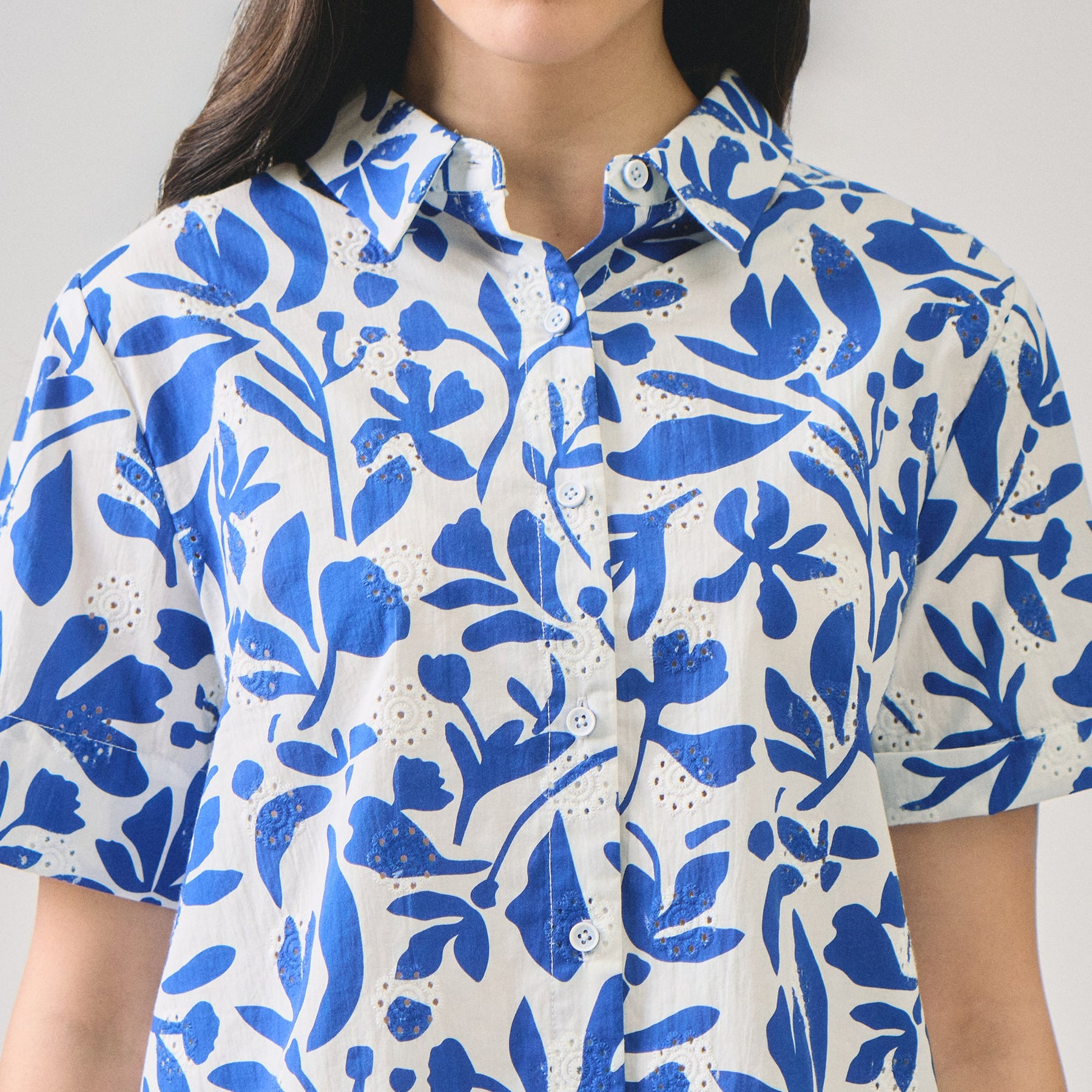 Effortlessly chic and breathable, this Printed Eyelet Button Down Shirt combines relaxed comfort with timeless style. Crafted from 100% cotton in a textured woven eyelet fabric, it features a charming turn-up hem detail that adds visual interest. The relaxed fit makes it perfect for casual outings or layering, while the lightweight material keeps you cool throughout the day. Fits true to size for an easy, flattering silhouette.