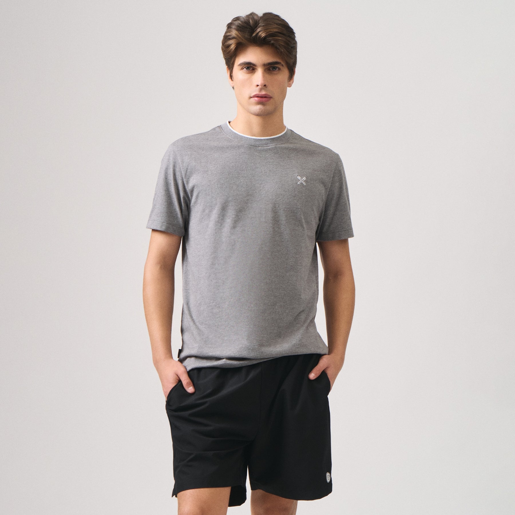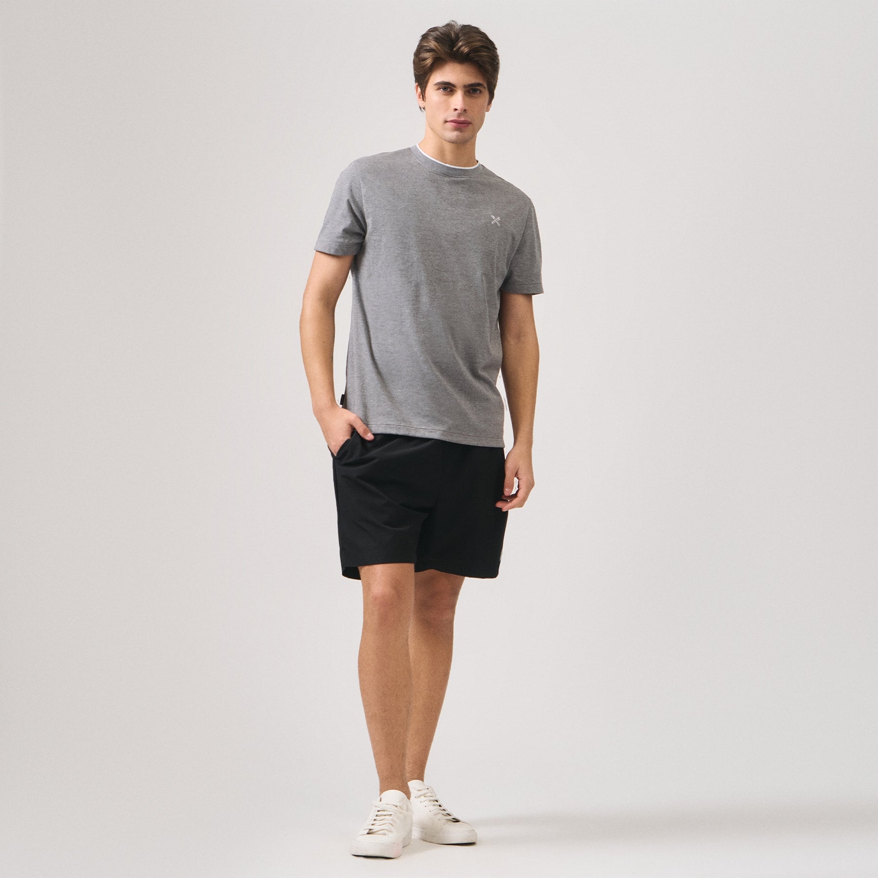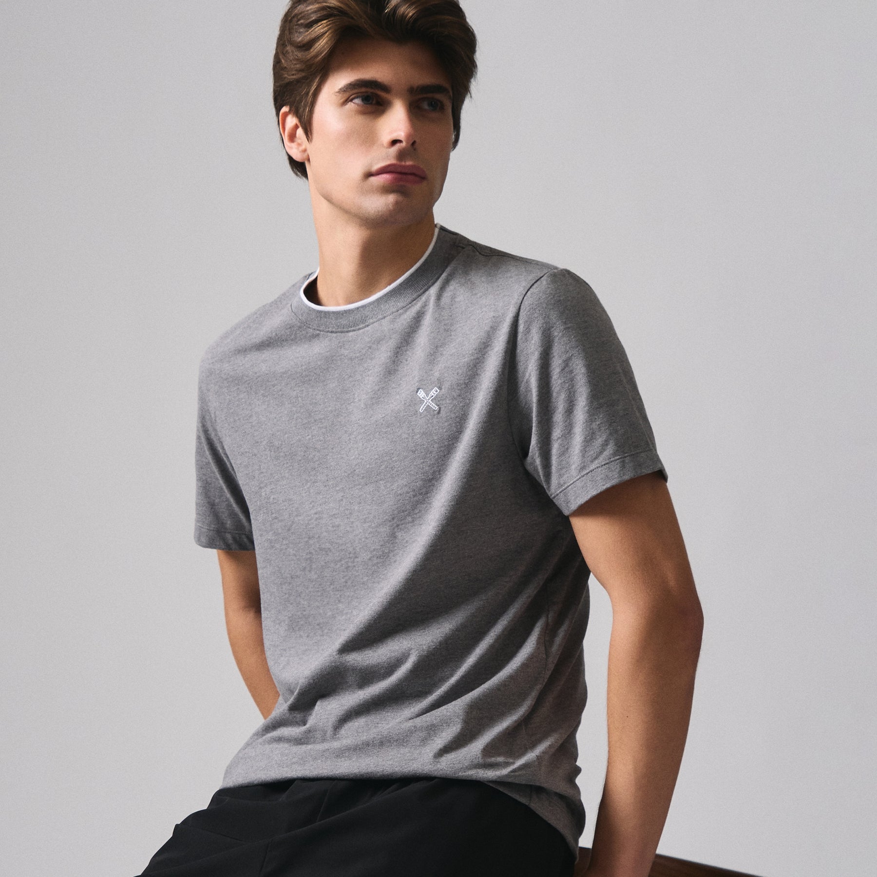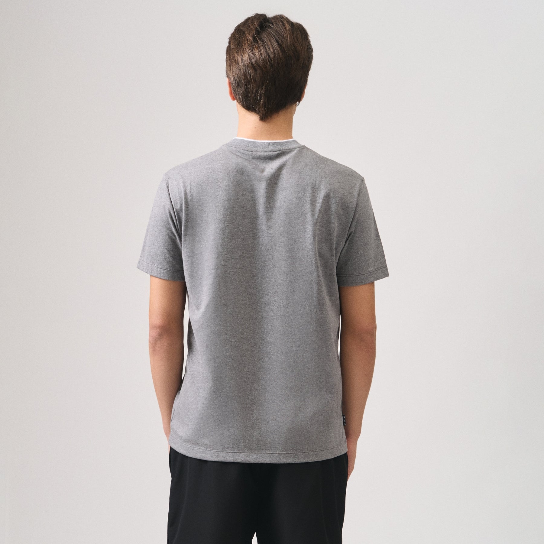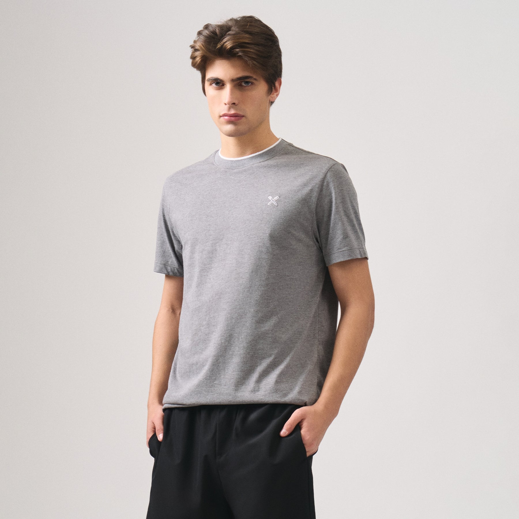 This regular-fit basic t-shirt is crafted from single jersey fabric, offering a soft and breathable feel ideal for everyday wear. The contrast tipping detail adds a subtle, refined touch to the classic design, enhancing its versatility. Its tailored fit ensures comfort without compromising style, making it a reliable wardrobe staple for casual and smart-casual outfits alike.