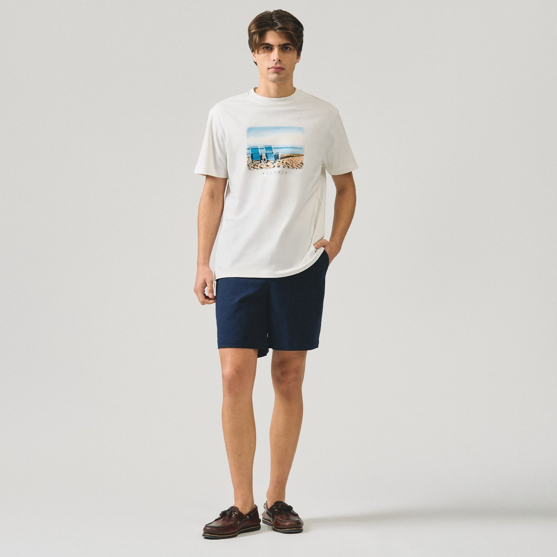 Crafted for casual comfort, this regular fit t-shirt features a distinctive beach chair graphic that captures the essence of leisurely seaside moments. The relaxed silhouette provides unrestricted movement, making it ideal for everyday wear, weekend getaways, or laid-back social gatherings. Quality construction ensures durability through repeated wear and washing, while the timeless design transcends seasonal trends. Perfect for those who appreciate understated style with a touch of vacation-inspired flair.