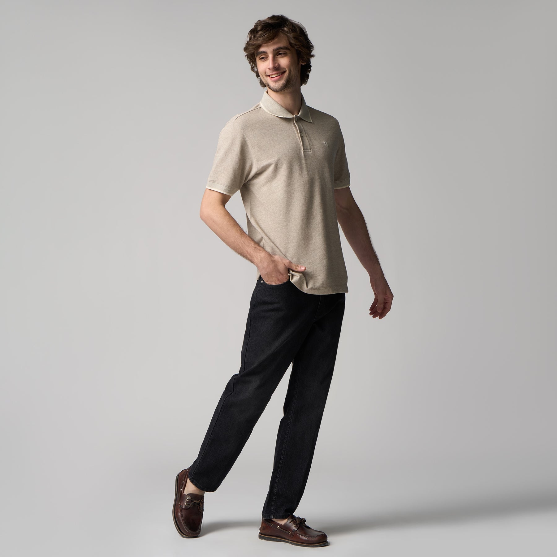 This regular fit polo shirt features a jacquard collar crafted from melange pique fabric, offering subtle texture and durability. Its tailored cut ensures comfortable wear and a flattering silhouette, making it an ideal choice for both casual and smart-casual occasions. The melange pique material enhances breathability and easy care, combining style with functional performance.