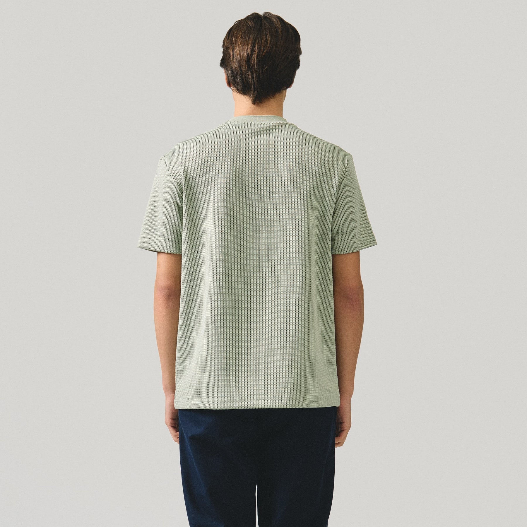 Crafted from premium textured knit fabric, this regular fit t-shirt delivers understated sophistication for everyday wear. The structured weave provides subtle visual interest while maintaining breathability and comfort. Its relaxed silhouette flatters a range of body types without sacrificing a polished appearance. Versatile enough to pair with tailored trousers or casual denim, this essential piece transitions seamlessly across seasons and occasions. A wardrobe staple that combines quality construction with timeless design.