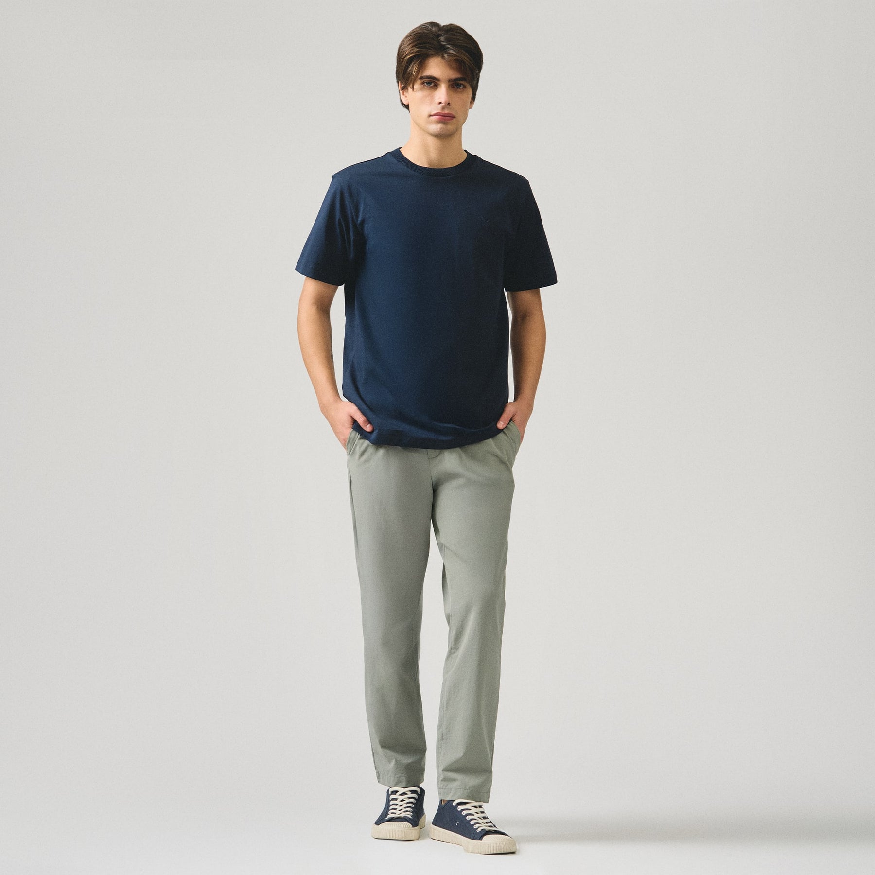 This regular fit T-shirt features a jacquard neck band crafted from Sorona, a sustainable fabric known for its softness and durability. Designed for comfort and everyday wear, it offers a refined look with breathable material that maintains shape wash after wash. Ideal for those seeking a stylish yet practical wardrobe staple that combines eco-friendly innovation with classic fit.
