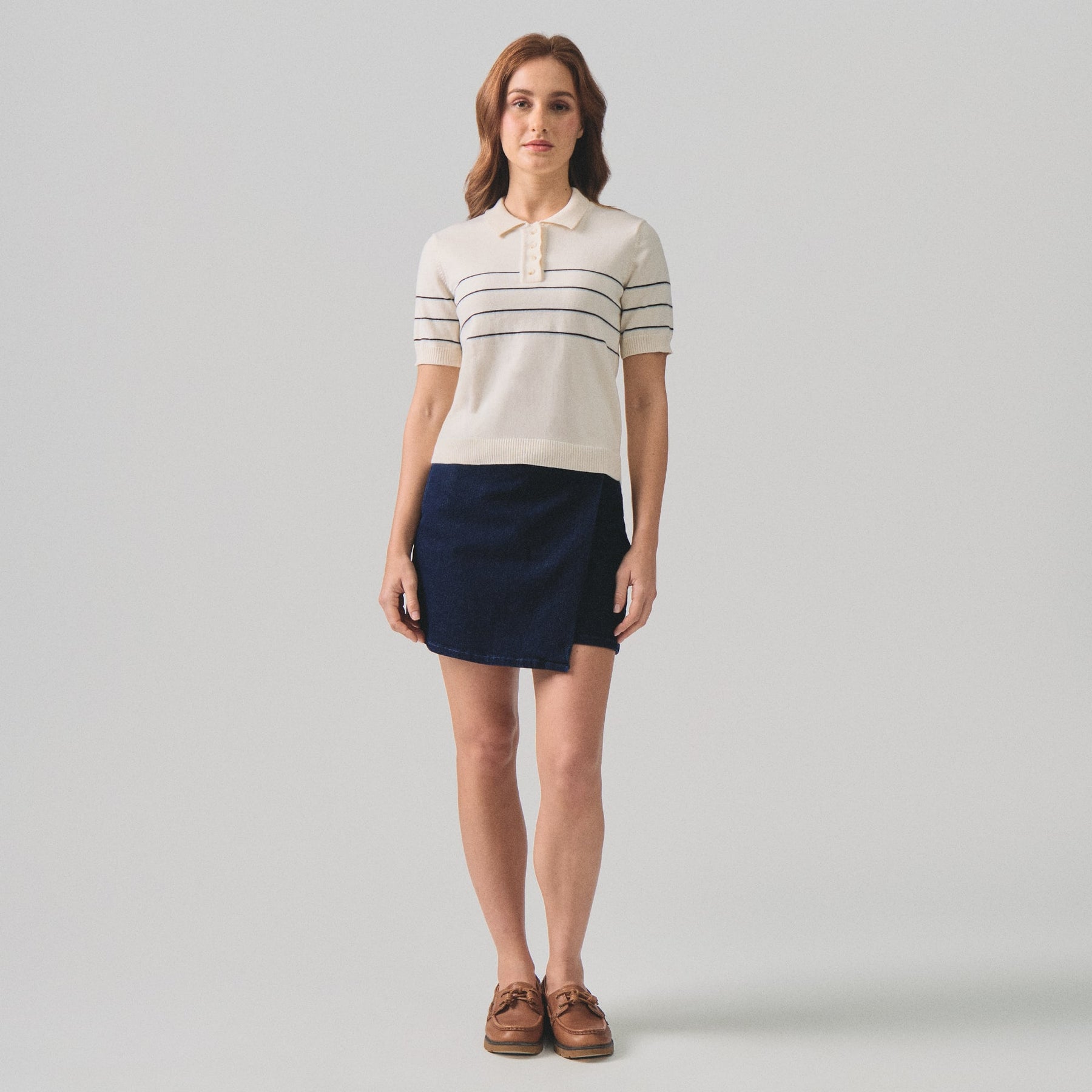 Elevate your casual wardrobe with this Striped Knit Polo, designed for effortless style and comfort. Crafted from a premium blend of 70% polyester and 30% nylon, the flat knit fabric offers durability and a refined finish. The classic striped pattern adds visual interest, while the regular fit ensures a flattering silhouette for everyday wear. True to size and versatile enough to pair with jeans or chinos, this polo transitions seamlessly from weekend outings to relaxed office settings. Perfect for those seeking quality basics with timeless appeal.