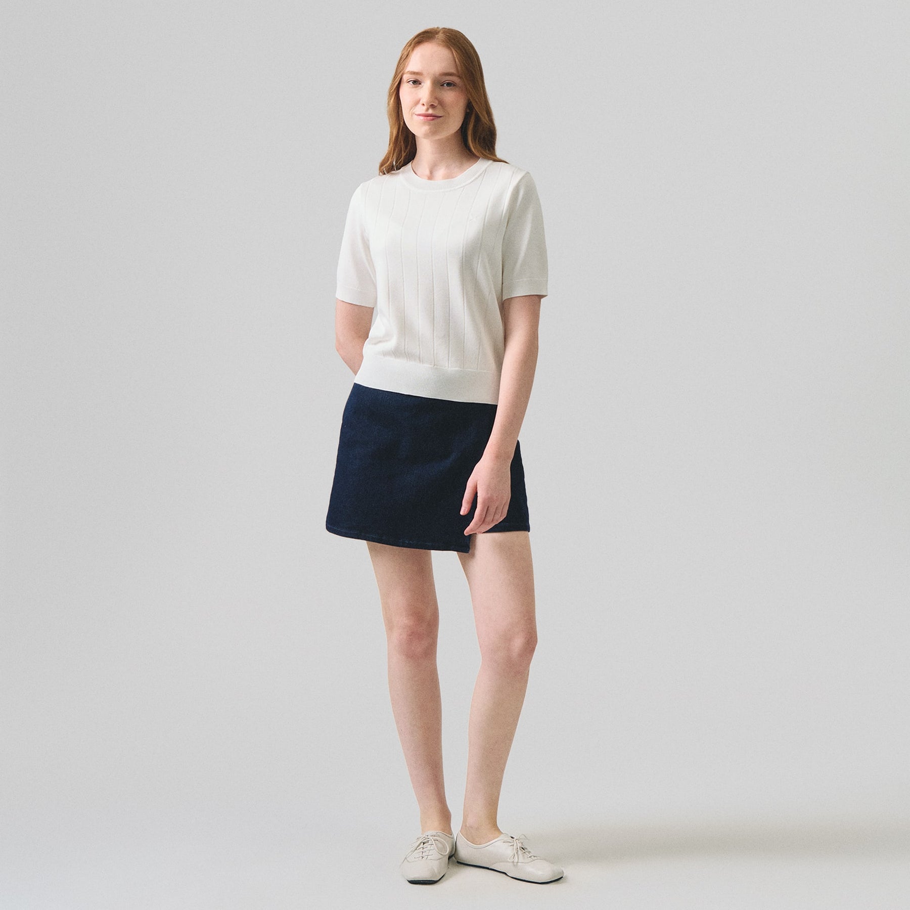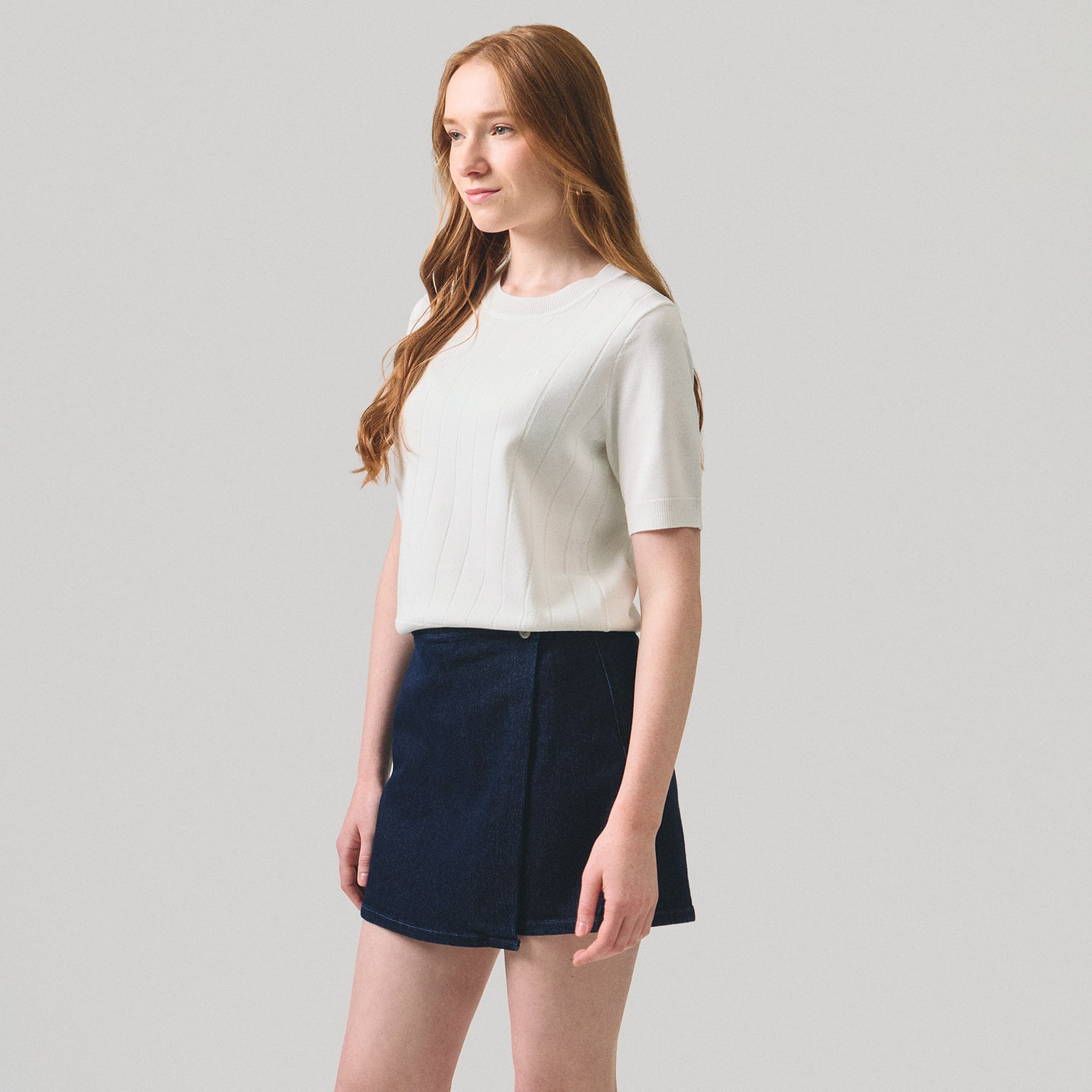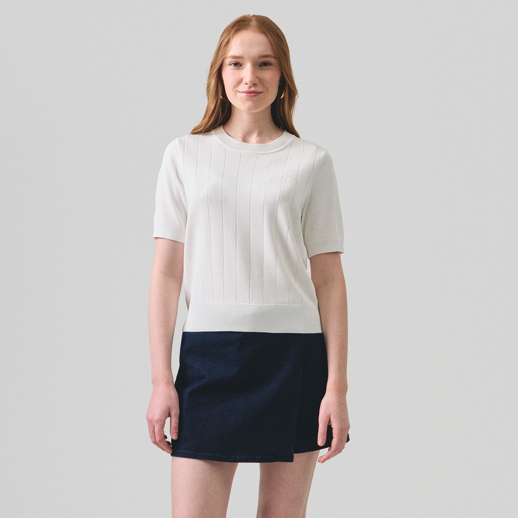 The Textured Knit Top is a versatile essential crafted from 100% viscose in a flat knit construction. Designed with a regular fit that flatters various body types, this top offers comfort and style for everyday wear. The viscose fabric provides a soft, breathable feel perfect for warm weather or layering. Simply follow the care label for easy maintenance. A timeless piece that transitions seamlessly from casual to dressed-up occasions.
